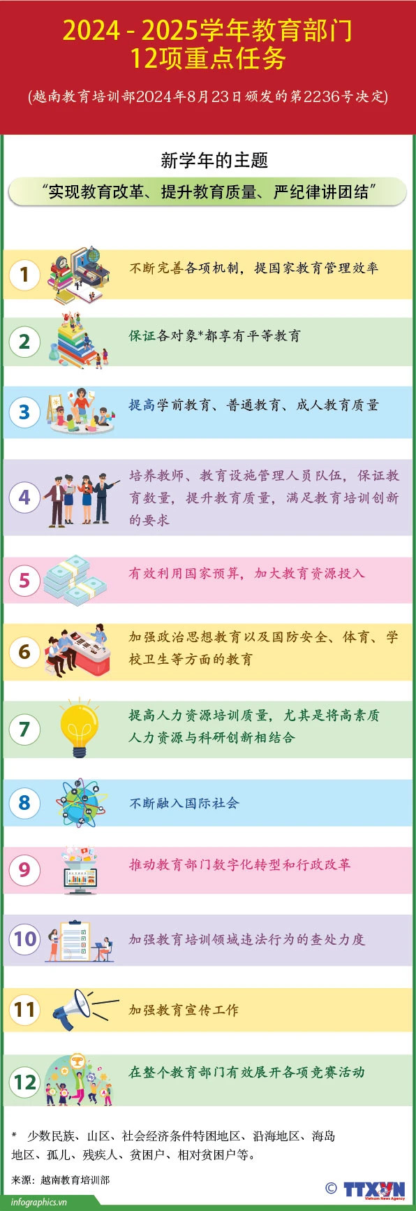 越南教育培训部确定2024-2025学年12项重点工作任务【图表新闻】