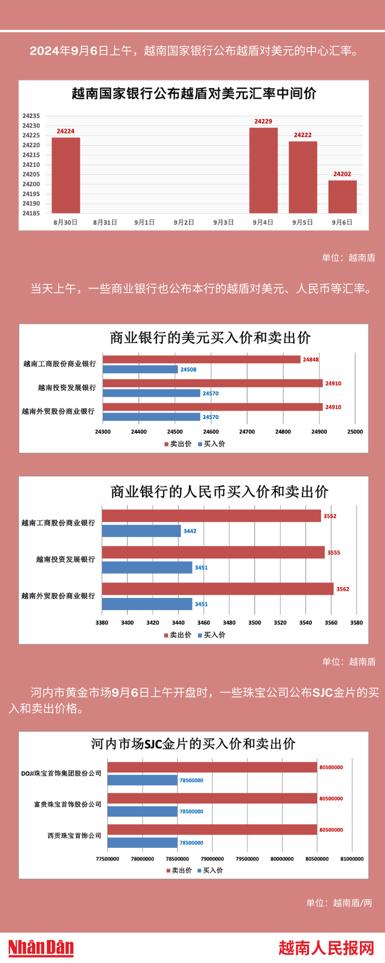 2024年9月6日上午,越南国家银行所公布的越盾对美元的中心汇率为24202。