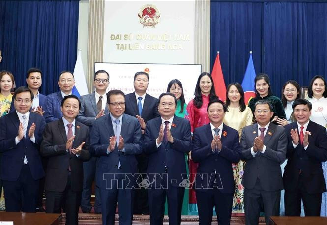 陈青敏国会主席代表党和国家领导,向大使馆工作人员、旅俄越侨社群致以诚挚问候。