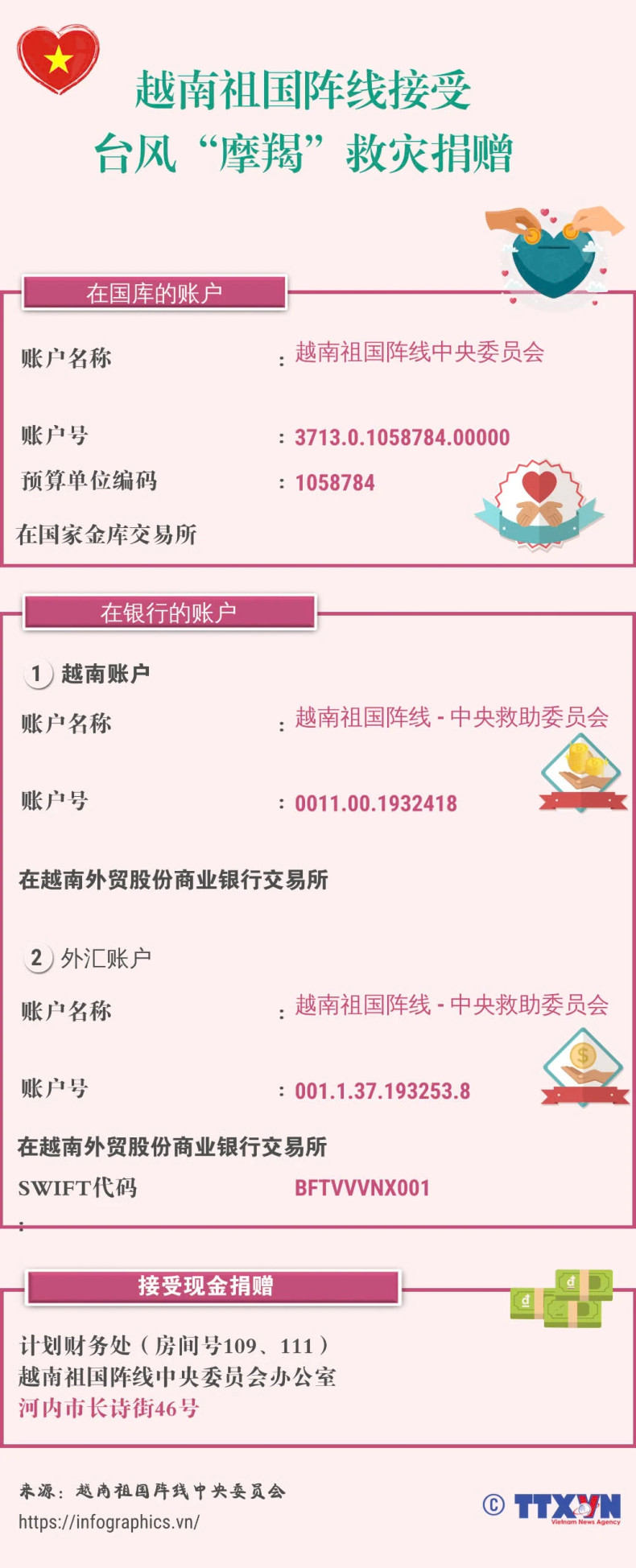 越南祖国阵线公布了接收对因第3号台风受灾同胞捐助的信息。