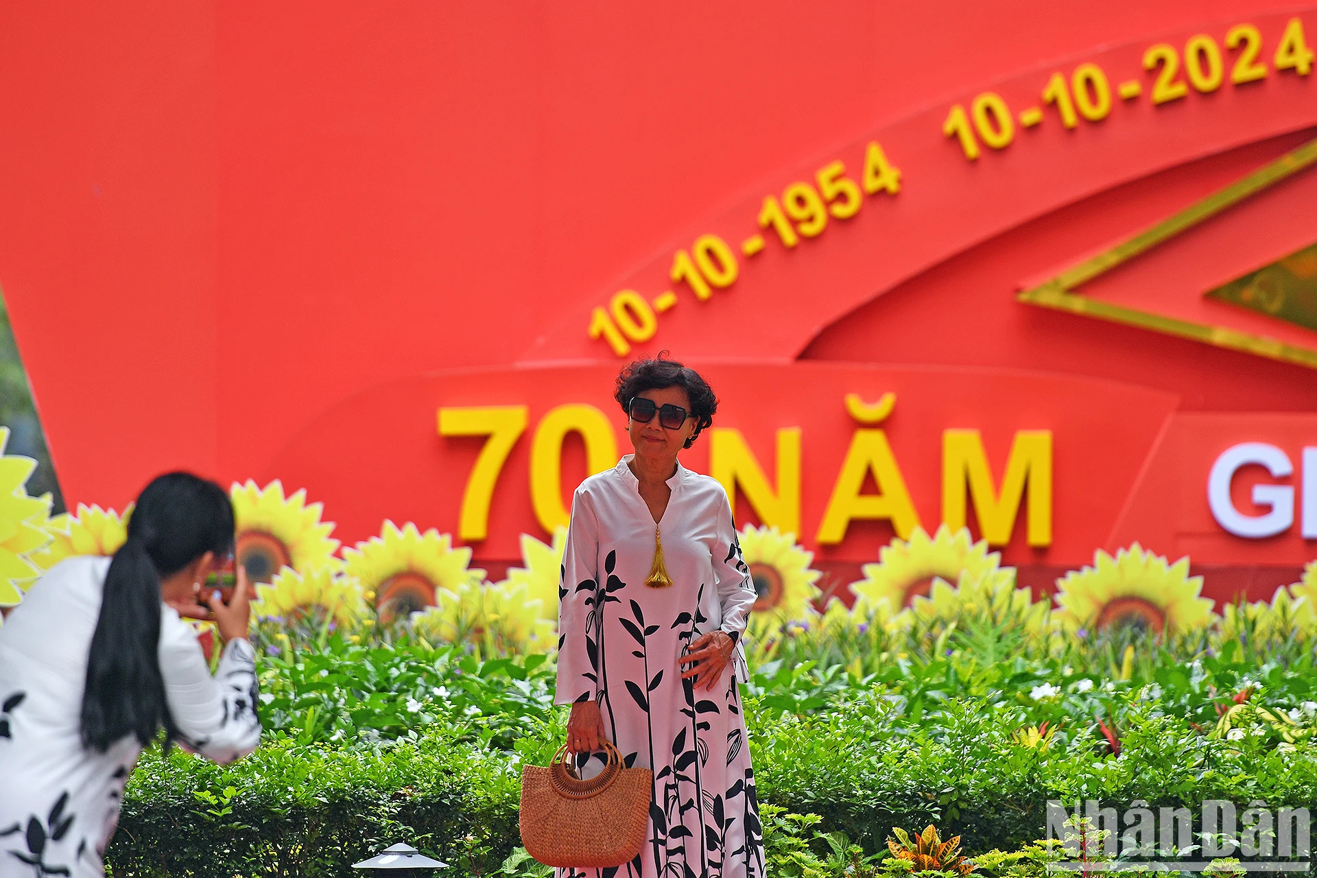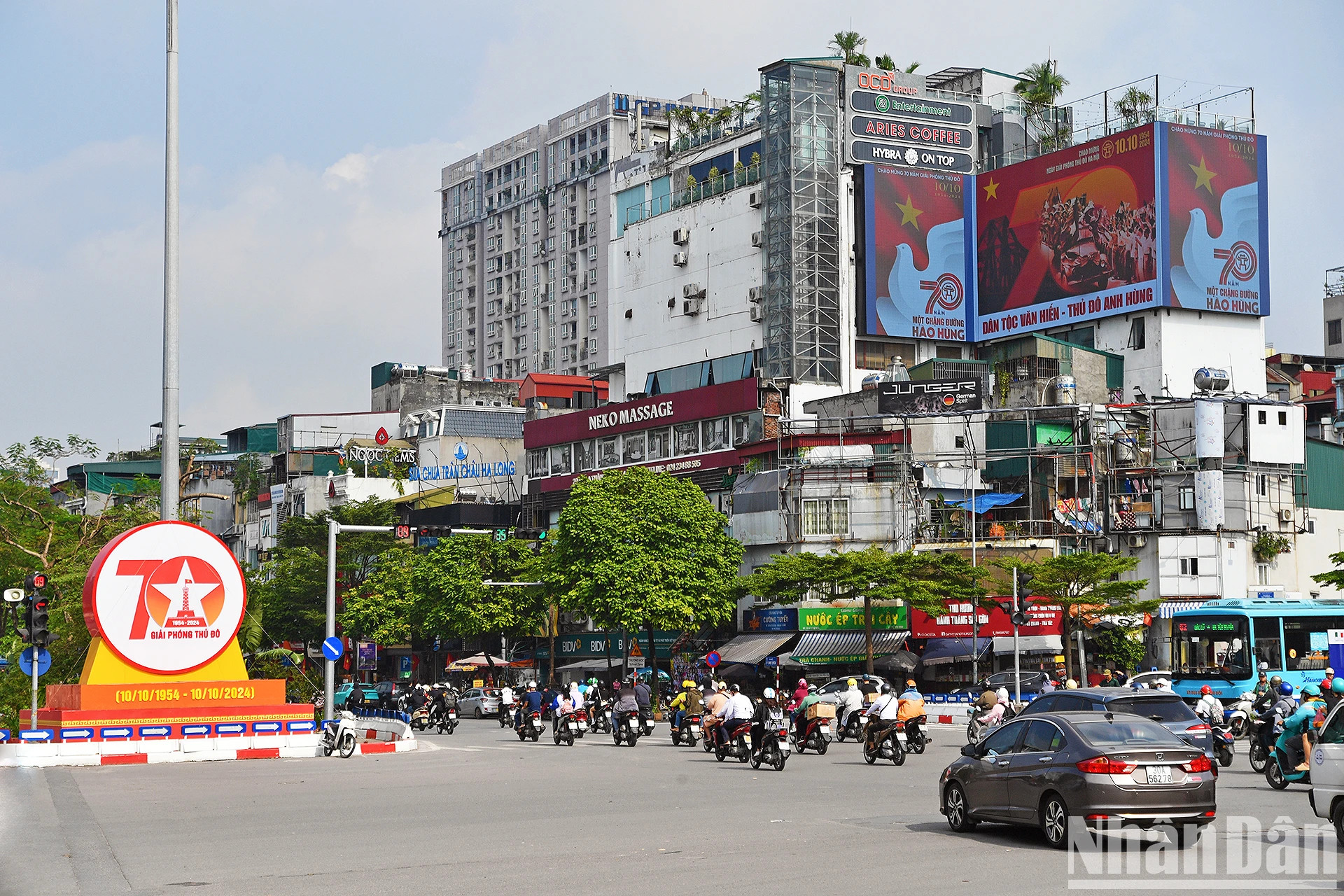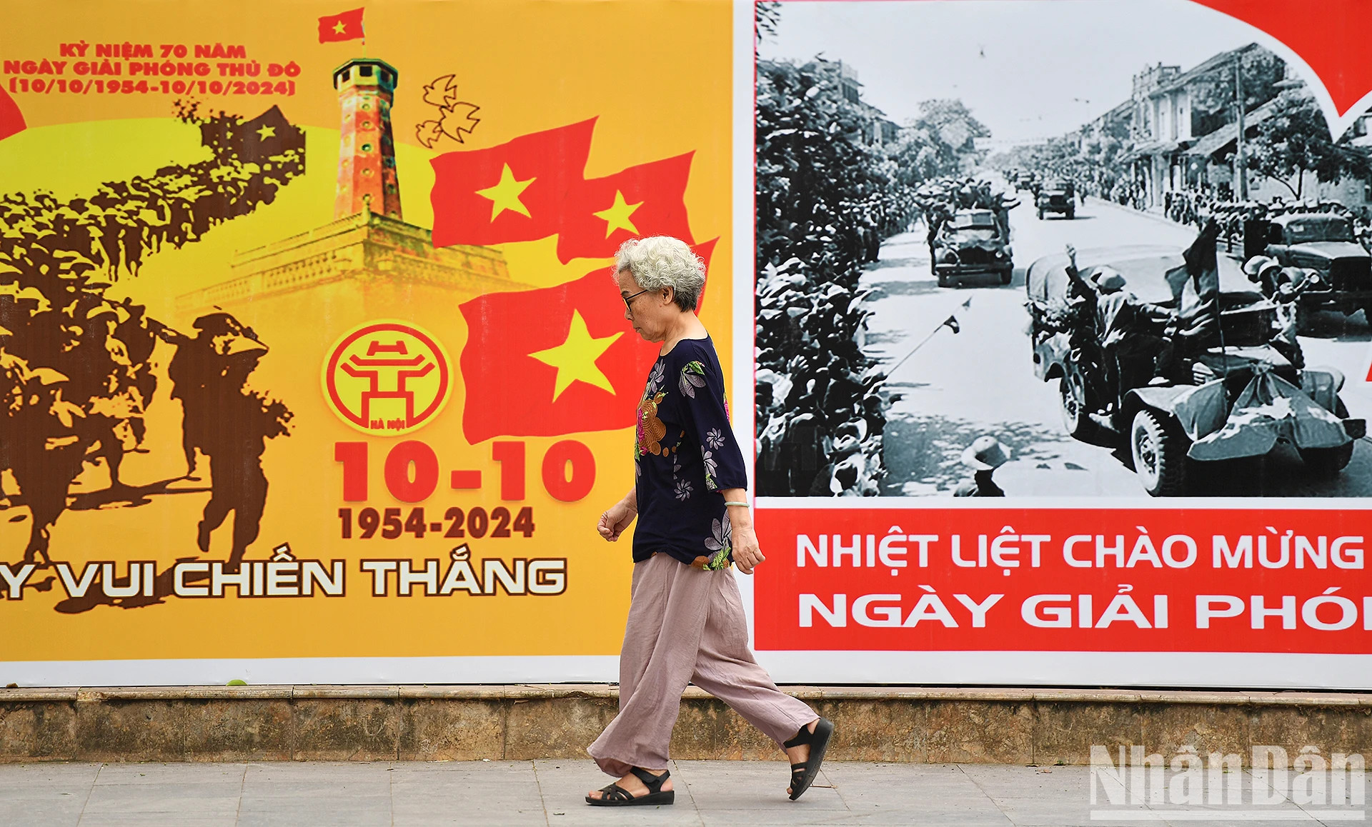 再过几天,河内人民将庆祝首都解放日(1954·10·10~2024·10·10)70周年。这几天,大街小巷,“胜利日”的英雄形象已被罩上红色,带来了自然灾害和洪涝灾害后的欢乐气氛。