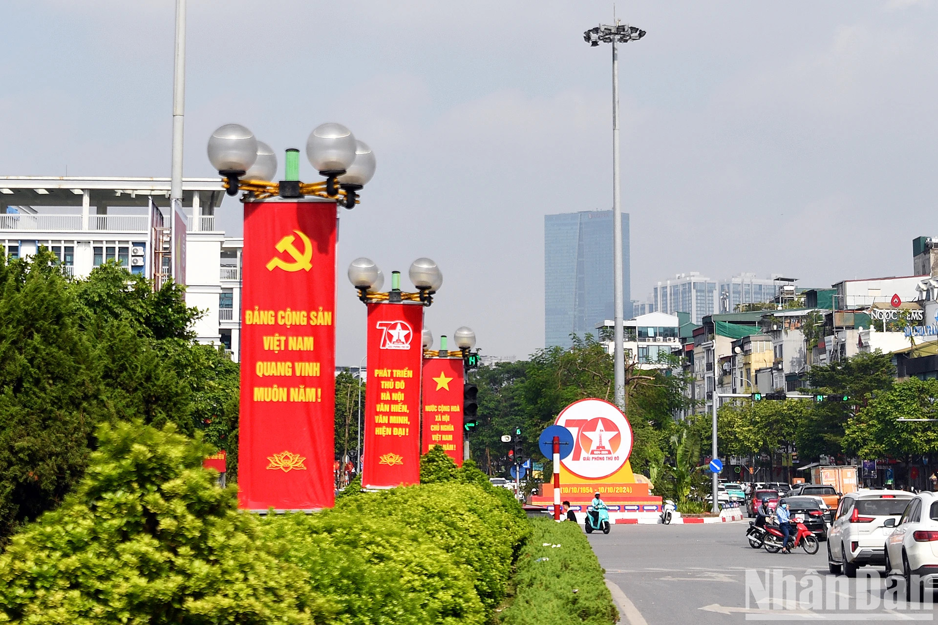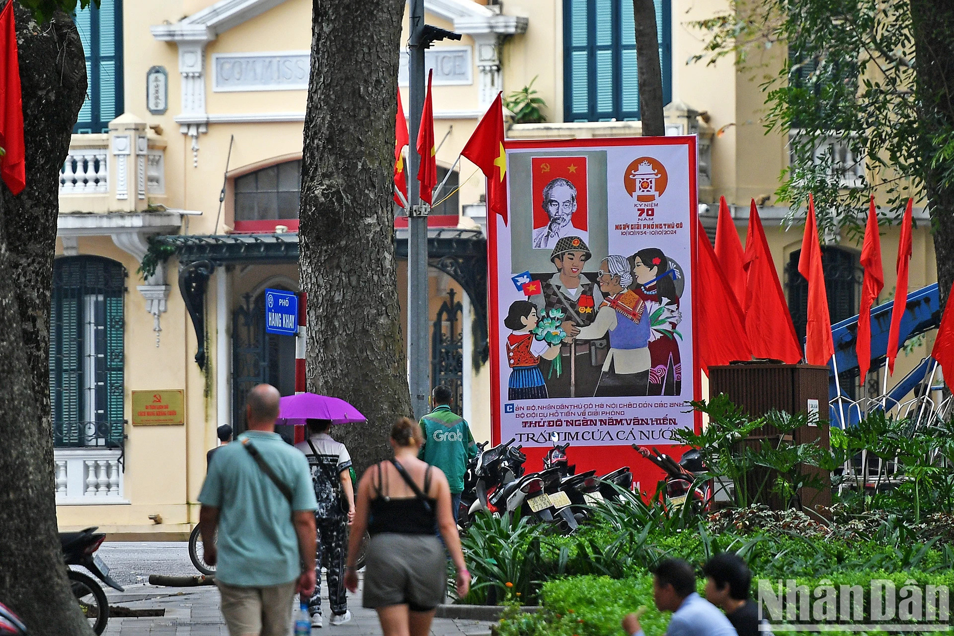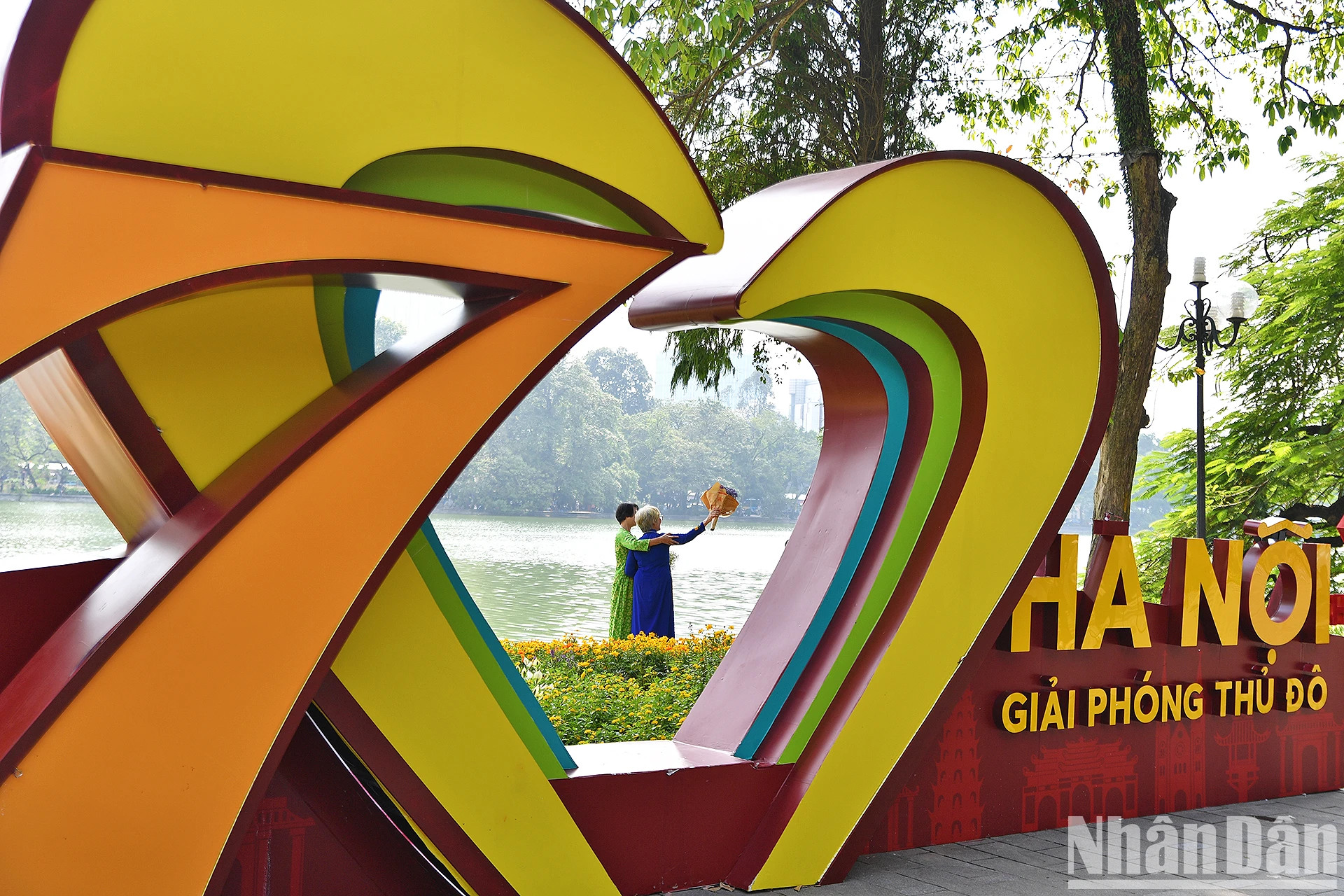 再过几天,河内人民将庆祝首都解放日(1954·10·10~2024·10·10)70周年。这几天,大街小巷,“胜利日”的英雄形象已被罩上红色,带来了自然灾害和洪涝灾害后的欢乐气氛。