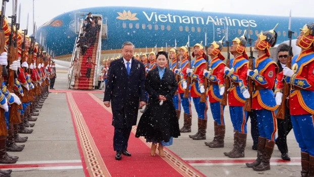 据越通社特派记者报道,当地时间9月30日11时30分(河内时间10时30分),搭载越共中央总书记、国家主席苏林和越南高级代表团的专机已抵达蒙古国首都乌兰巴托成吉思汗机场,开始对蒙古国进行国事访问。