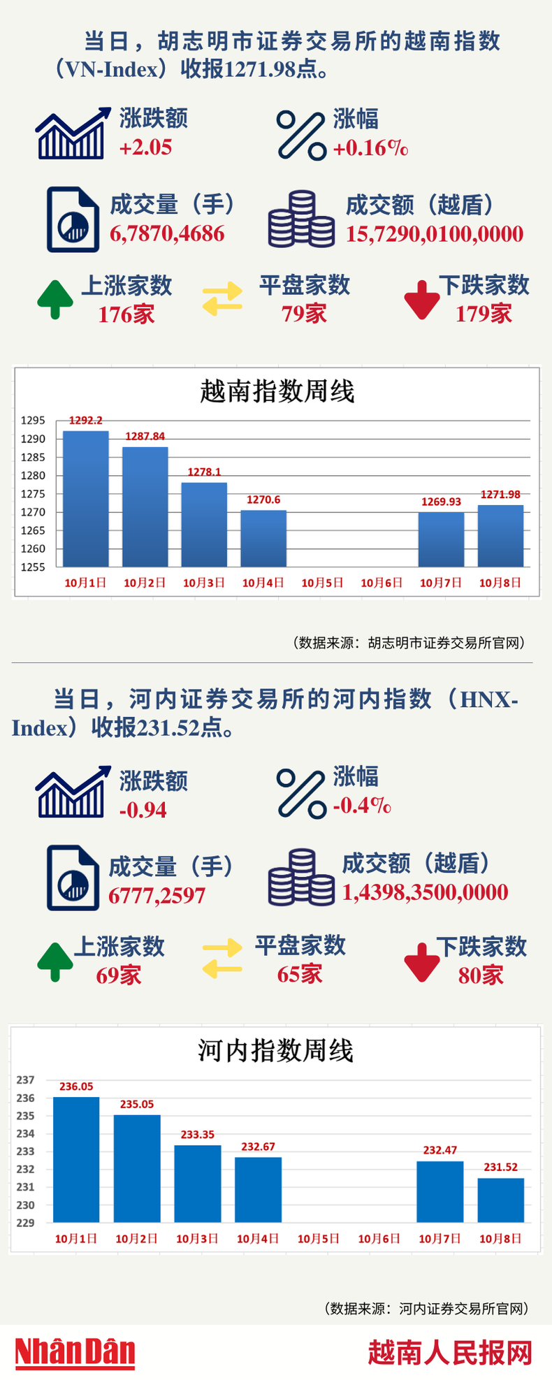 10月8日越南证券市场数据一览 【图表新闻】