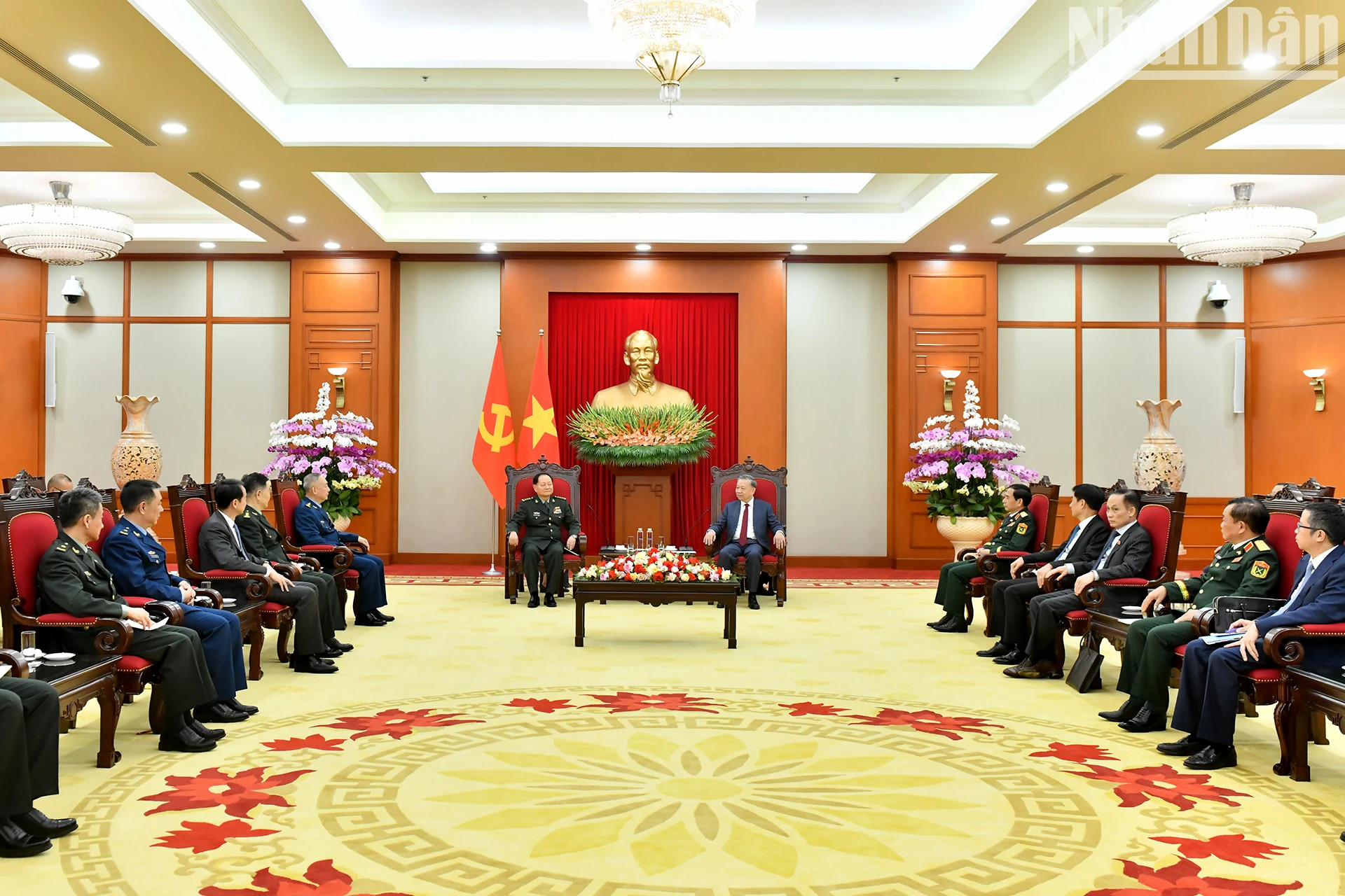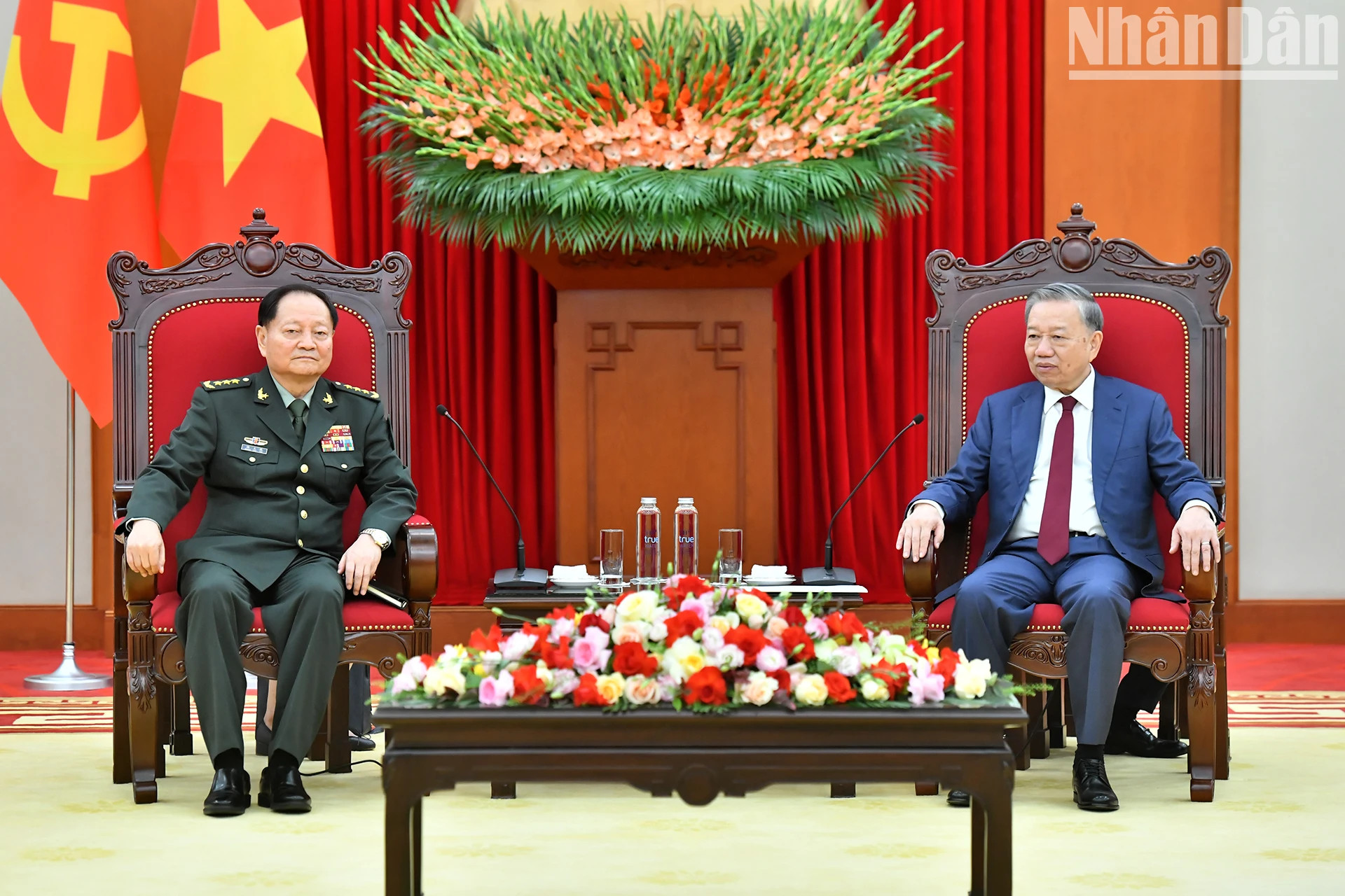 越共中央总书记苏林会见中共中央军事委员会副主席张又侠上将。