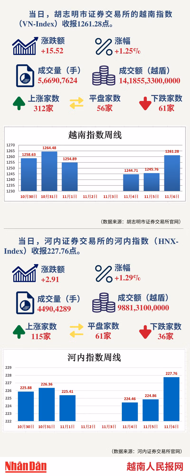 11月6日越南证券市场数据一览 【图表新闻】