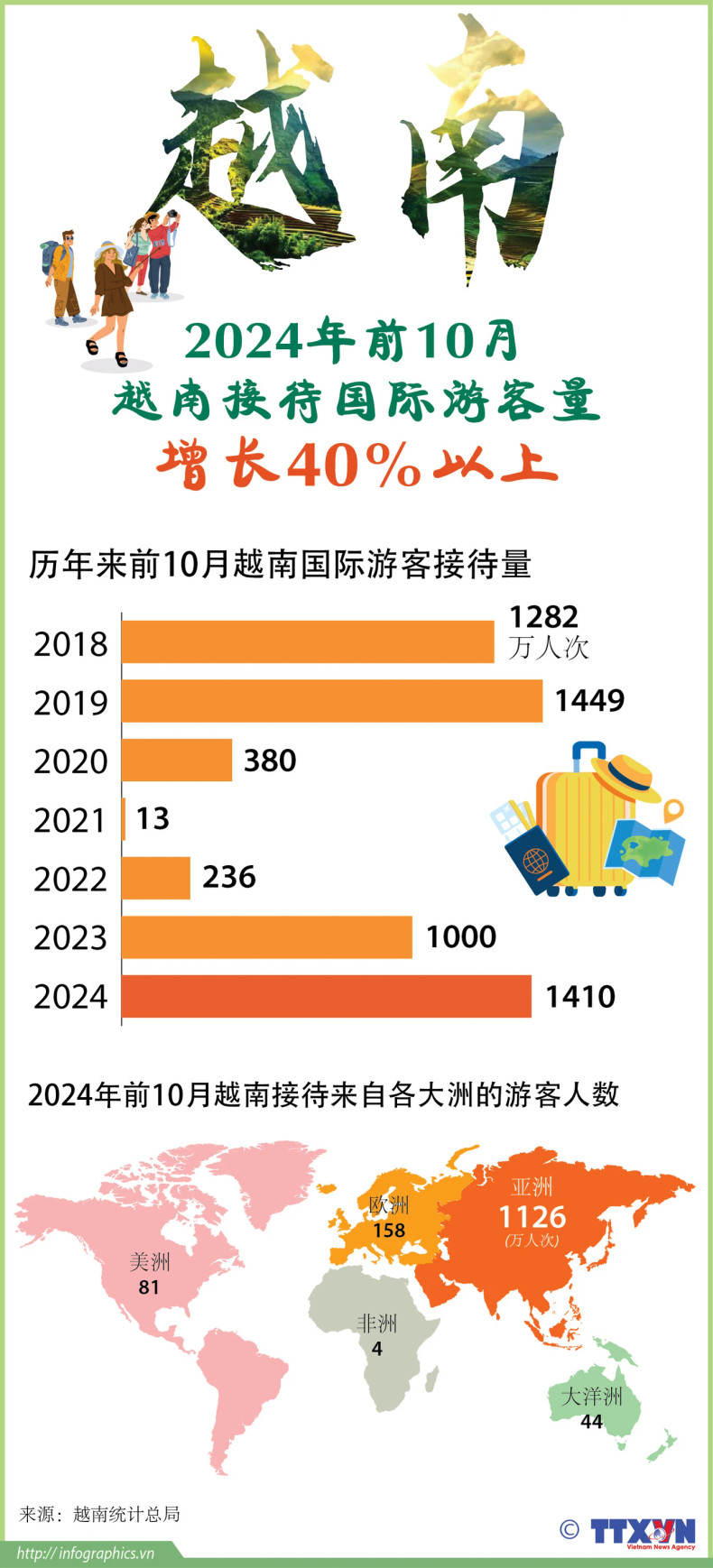 前10个月越南接待国际游客量同比增长41.3%【图表新闻】