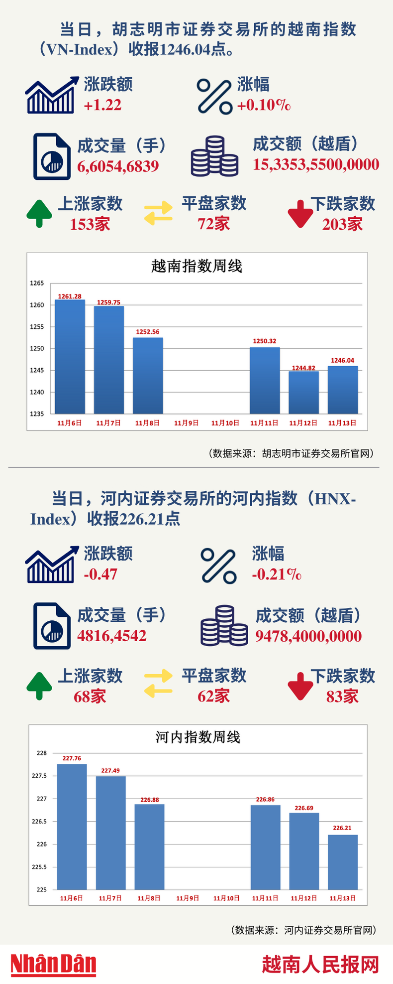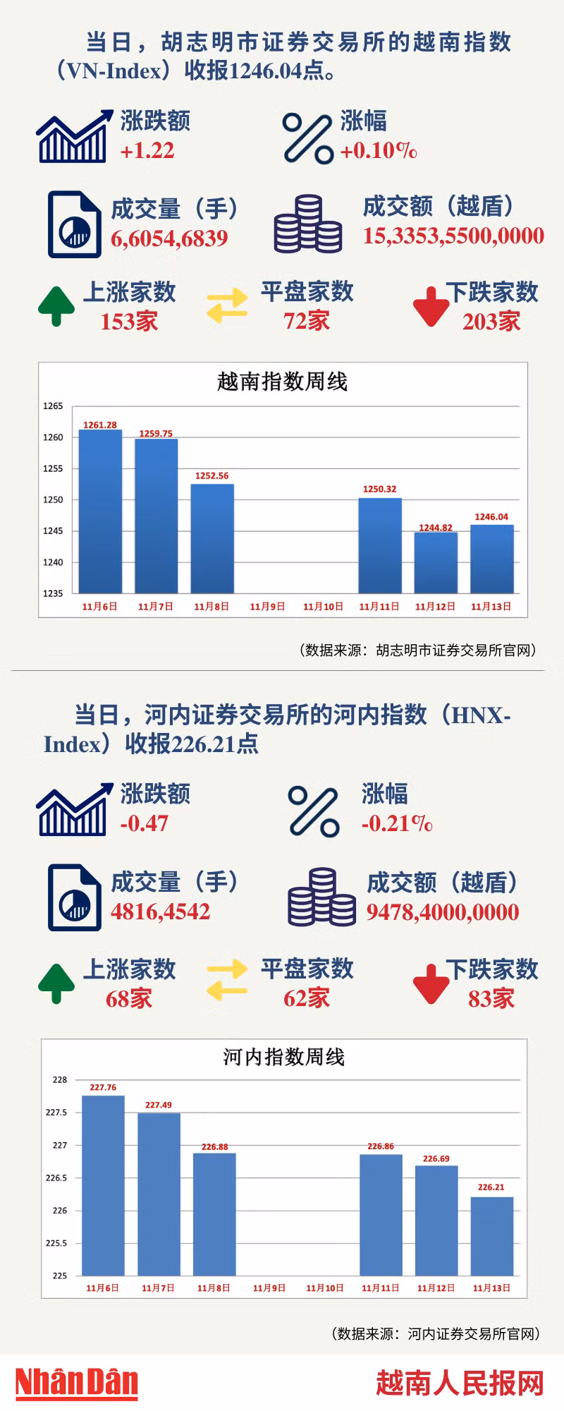 11月13日越南证券市场数据一览 【图表新闻】
