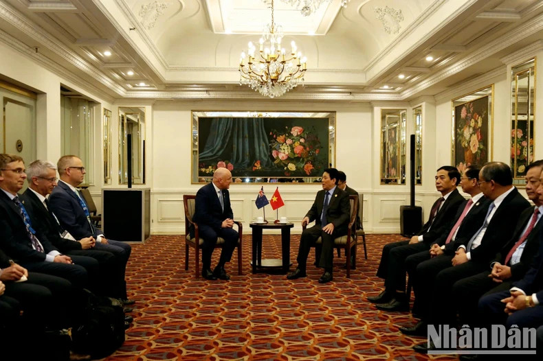 越南国家主席梁强表示,越南重视并希望发展与新西兰的战略伙伴关系。新西兰总理克里斯托弗·卢克森强调,越南是新西兰在地区的优先合作伙伴。卢克森总理还建议双方积极协调并制定路线图,考虑今后将两国关系提升到新的高度。