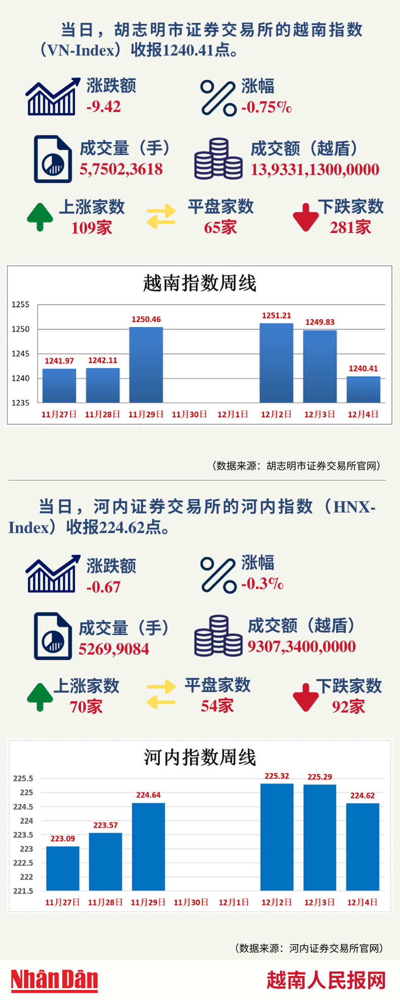12月4日越南证券市场数据一览 【图表新闻】