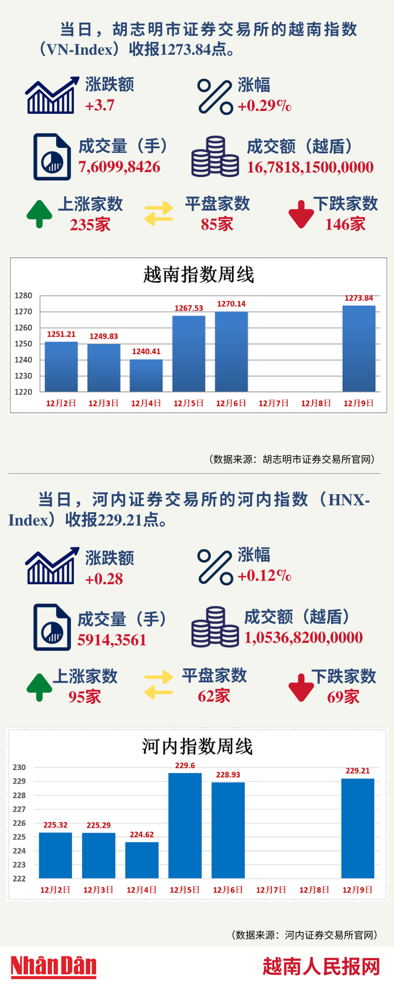 12月9日越南证券市场数据一览 【图表新闻】