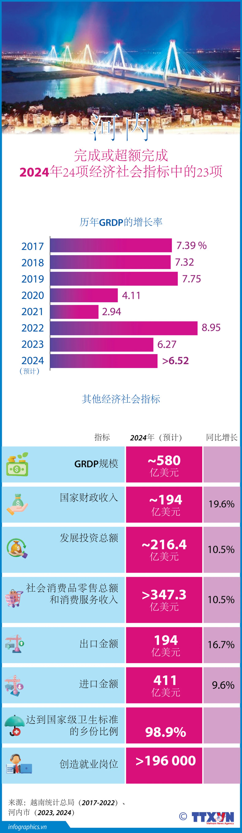 河内市完成或超额完成2024年24个经济社会发展指标中的23个【图表新闻】
