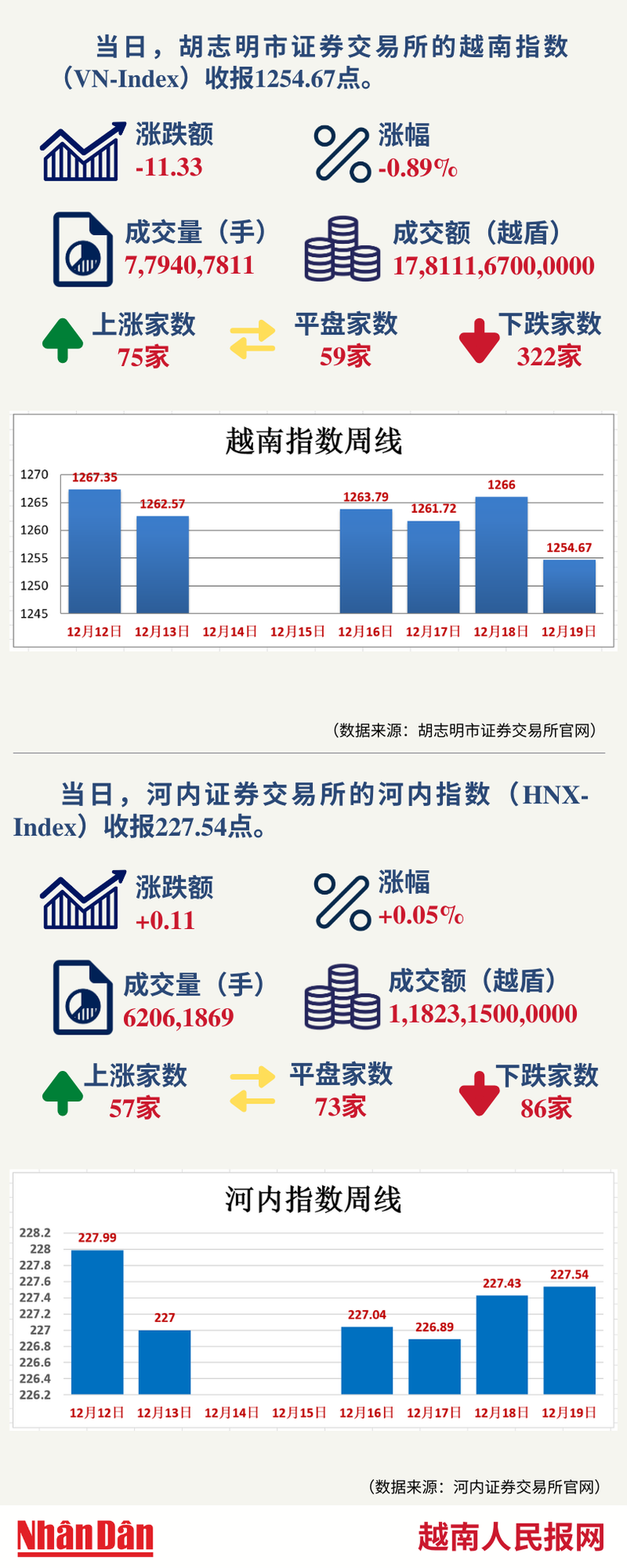12月19日越南证券市场数据一览 【图表新闻】