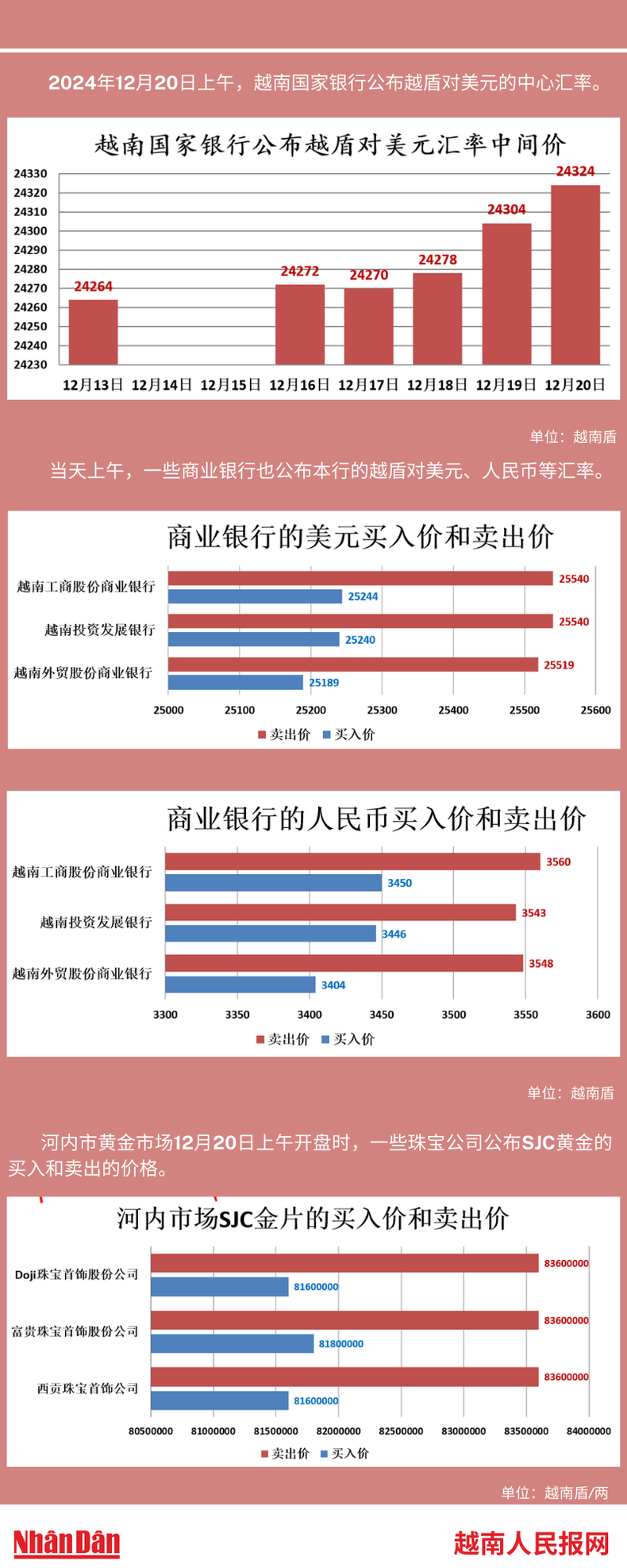2024年12月20日上午,越南国家银行所公布的越盾对美元的中心汇率为24324。