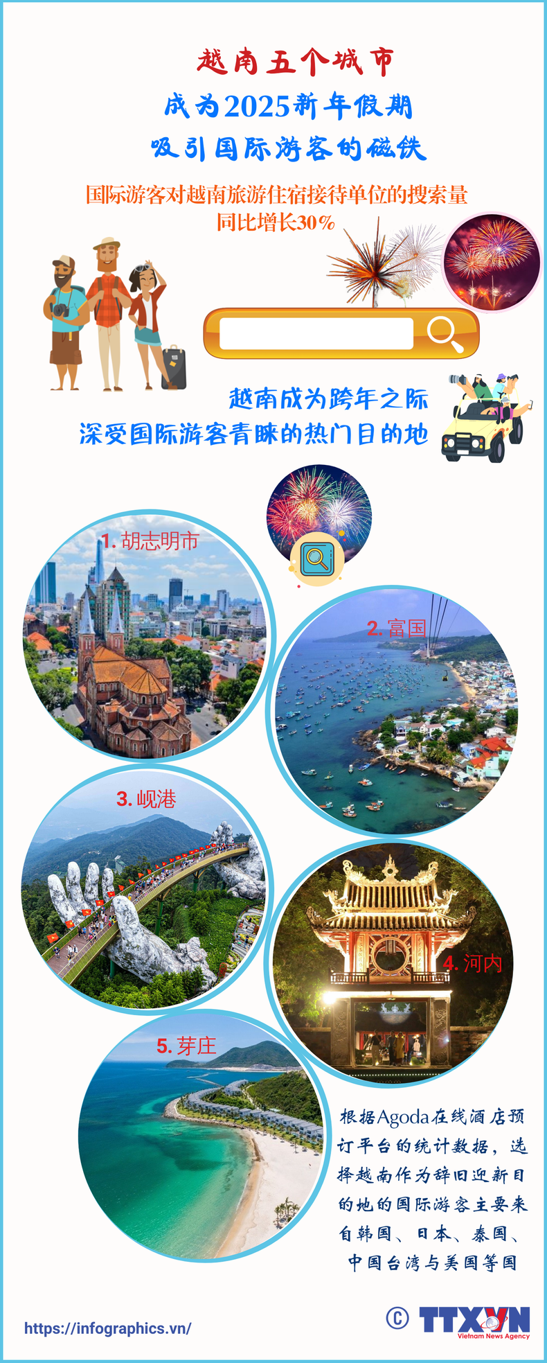 越南五个城市成为2025新年假期吸引国际游客的磁铁【图表新闻】