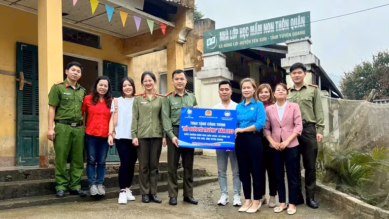 宣光省公安厅共青团和捐助者在安山县雄利乡军村幼儿学校实施了“助学前行”项目。