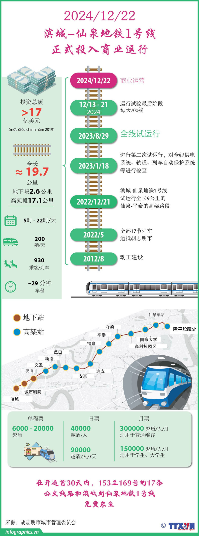 地铁一号线项目已具备正式运营的各项条件,开启了现代城市交通发展征程的新篇章。地铁1号线更是胡志明市增长、融入和可持续发展渴望的象征。该项目有望将满足人民群众快捷、高效的出行需求,为减轻交通压力和环境污染做出贡献。