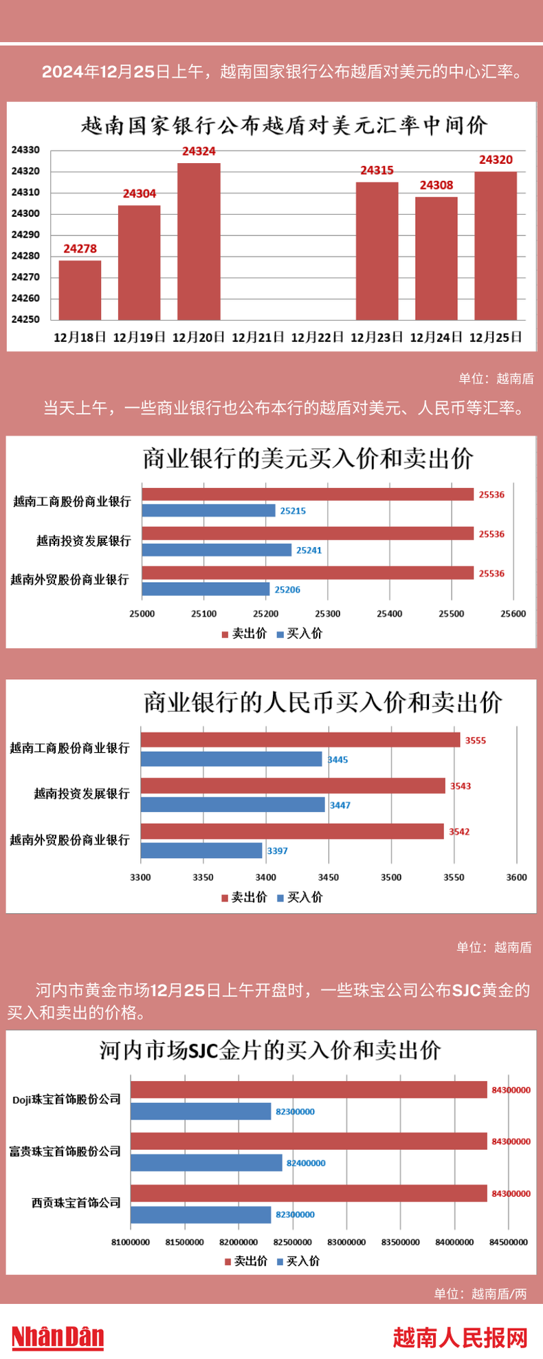 2024年12月25日上午,越南国家银行所公布的越盾对美元的中心汇率为24320。