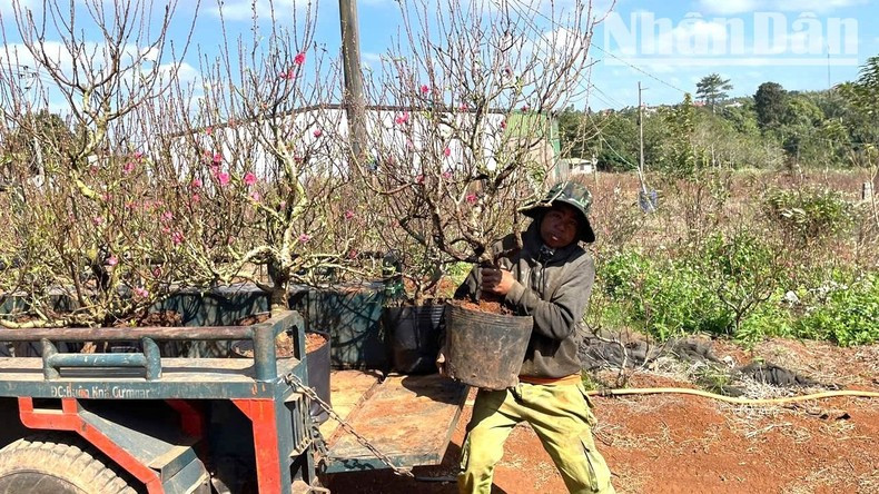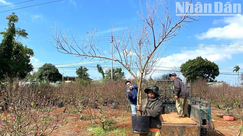 在接近春节的日子里,这里的桃农精心准备了最漂亮的桃子盆栽和树枝服务于省内人民和商人收购和运输到整个南部省市,其中包括胡志明市、岘港、芹苴、平定和庆和等大省市,为人民欢庆温馨快乐的春节提供服务。