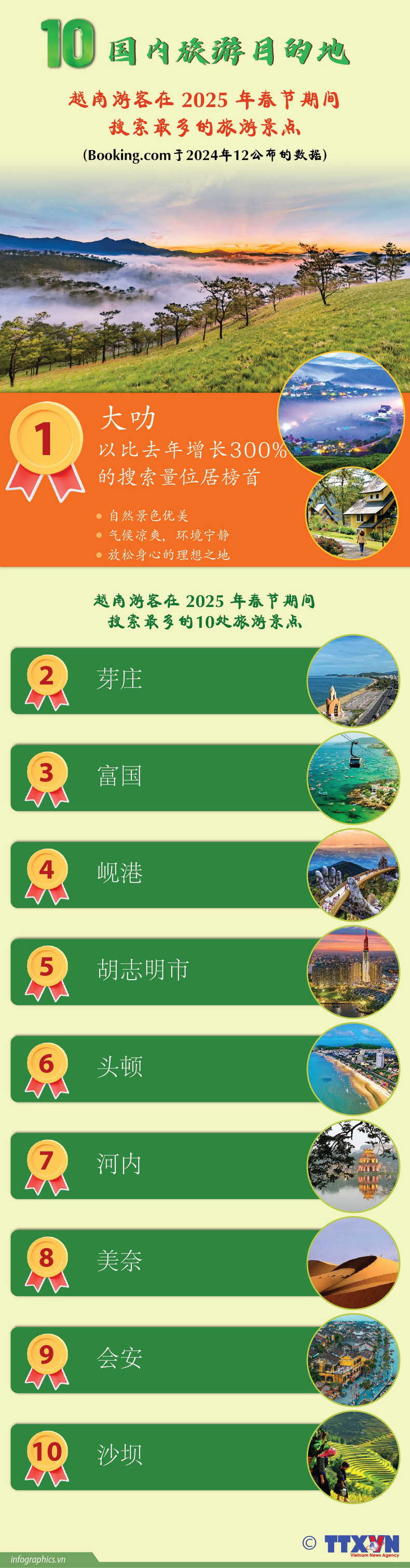 越南游客在2025年春节期间搜索量最多的10个旅游目的地【图表新闻】