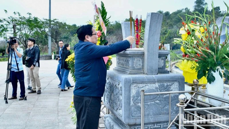 2月8日上午,在视察广南省期间,越南政府总理范明正前往广南省烈士陵园,向安葬在这里的英雄烈士和越南英雄母亲敬香缅怀。
