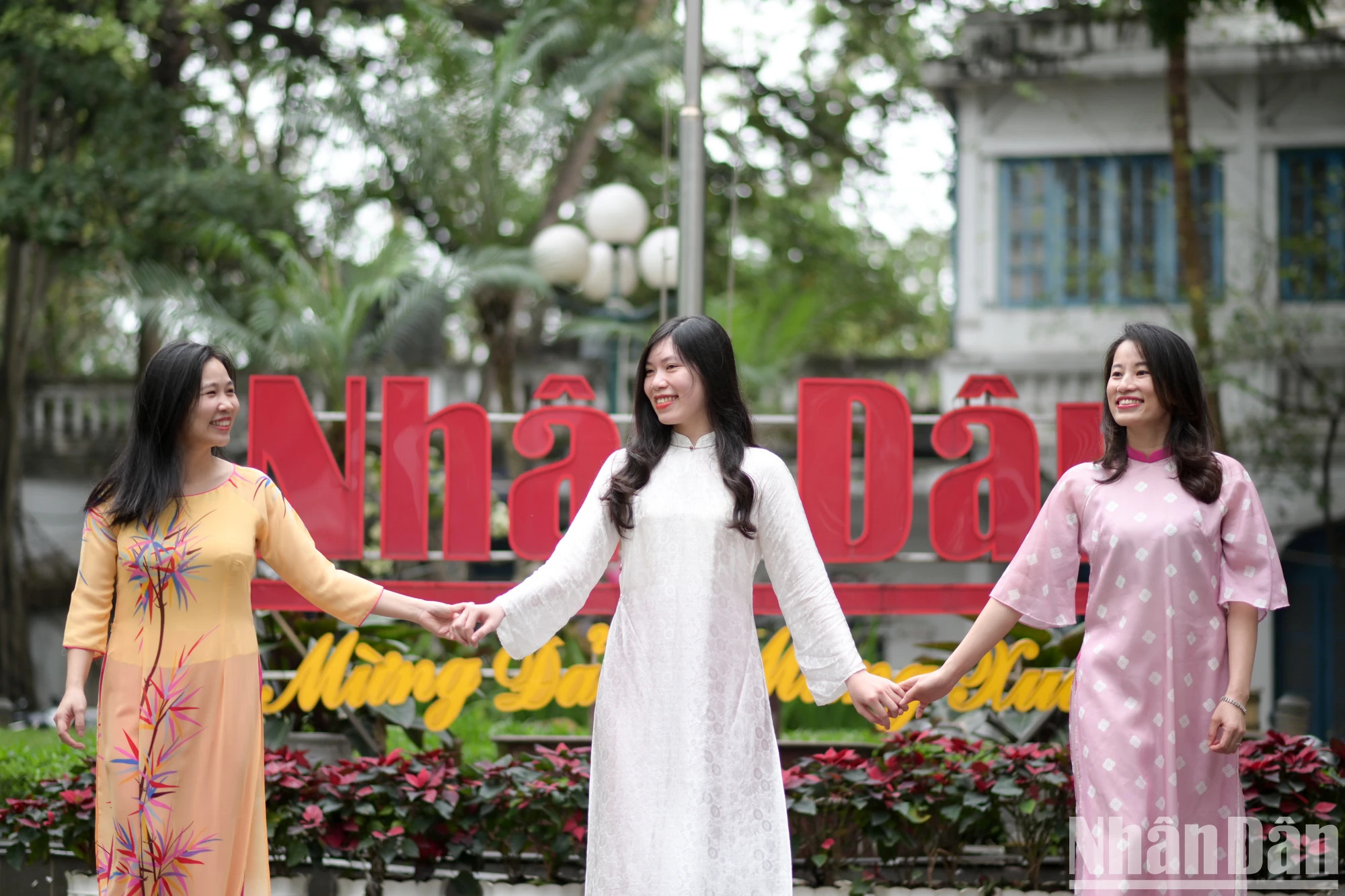 | 《人民报》女职员、记者、编辑员响应2025年“越南奥黛周”。 |