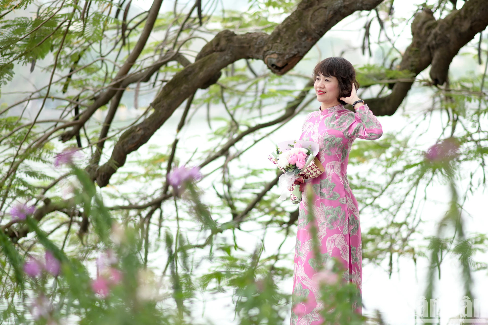 | 《人民报》女记者身着优雅的越南奥黛。 |