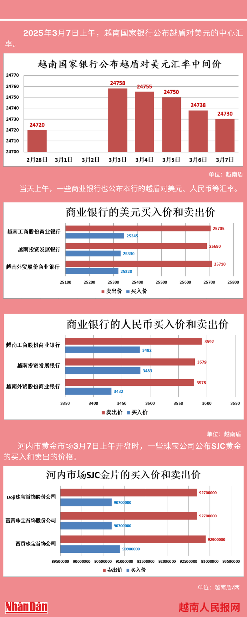 2025年3月7日上午,越南国家银行所公布的越盾对美元的中心汇率为24730。