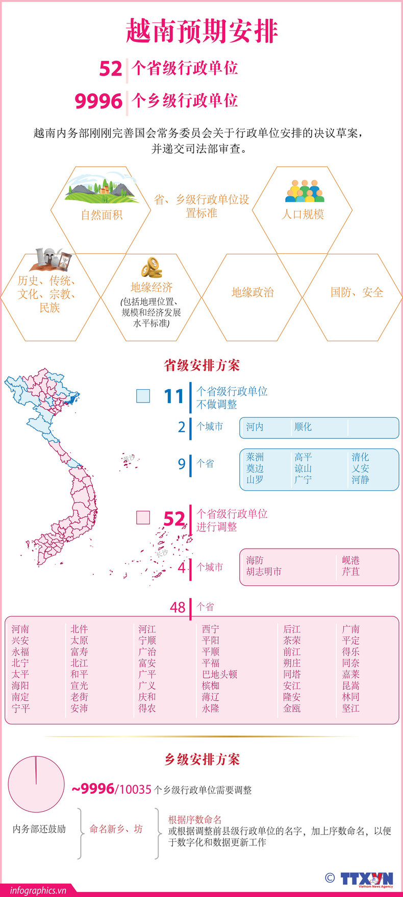 越南内务部刚刚完善国会常务委员会关于行政单位安排的决议草案,并递交司法部审查。