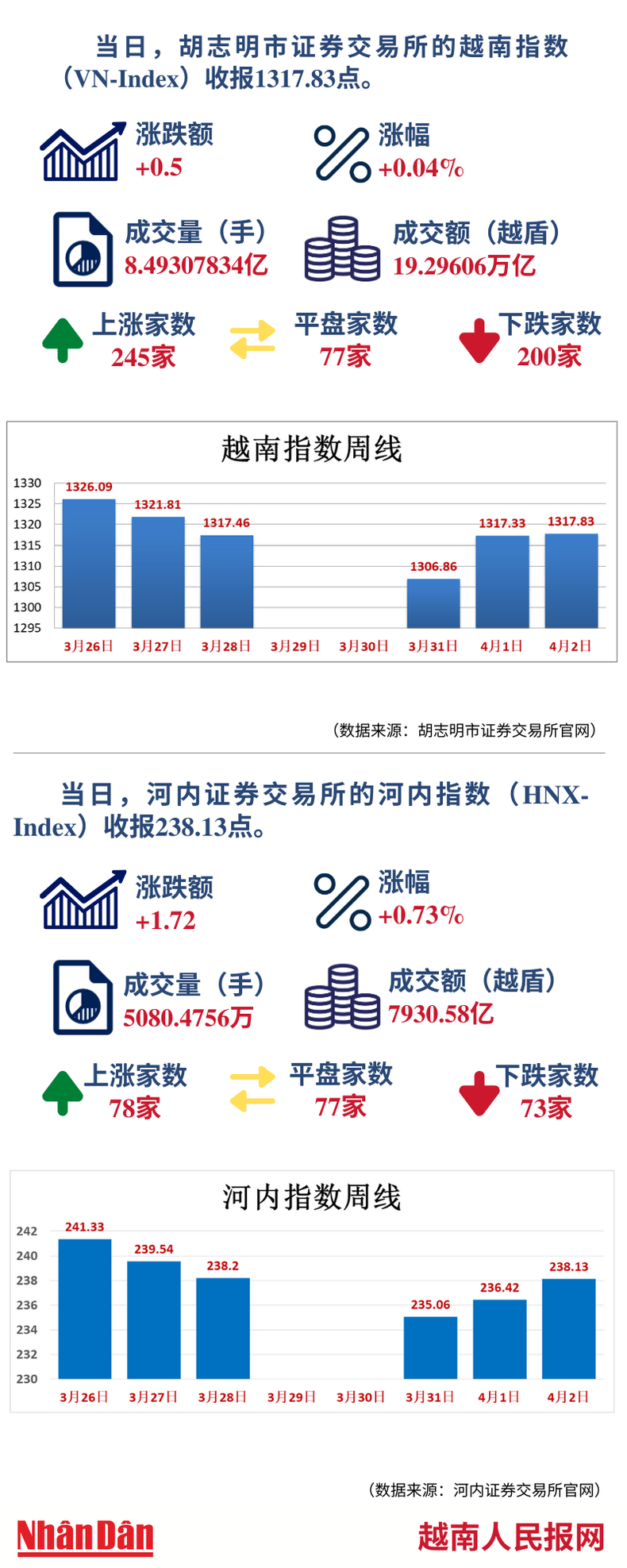 4月2日越南证券市场数据一览 【图表新闻】