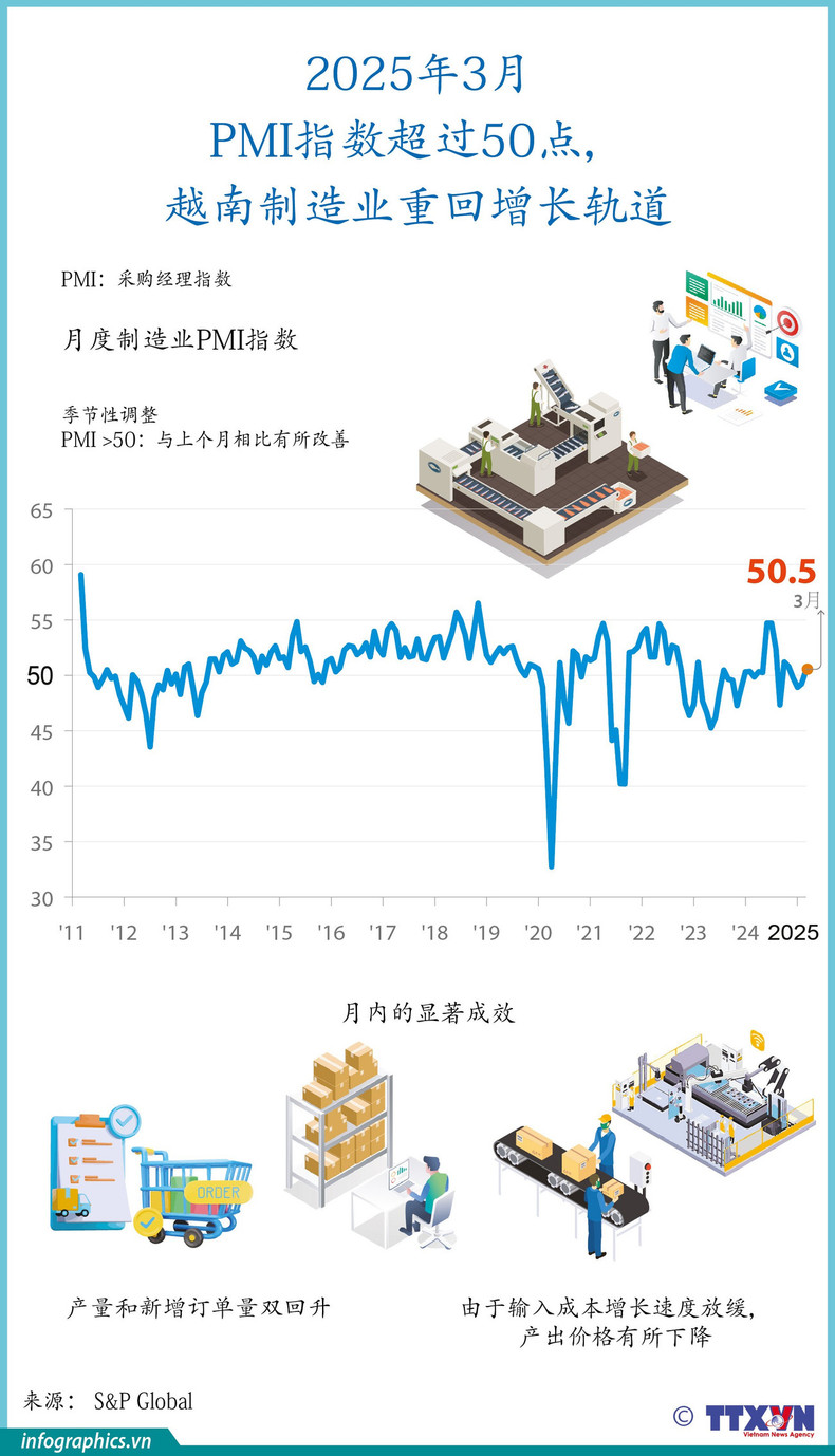 2025年3月PMI指数超过50点 越南制造业重回增长轨道【图表新闻】
