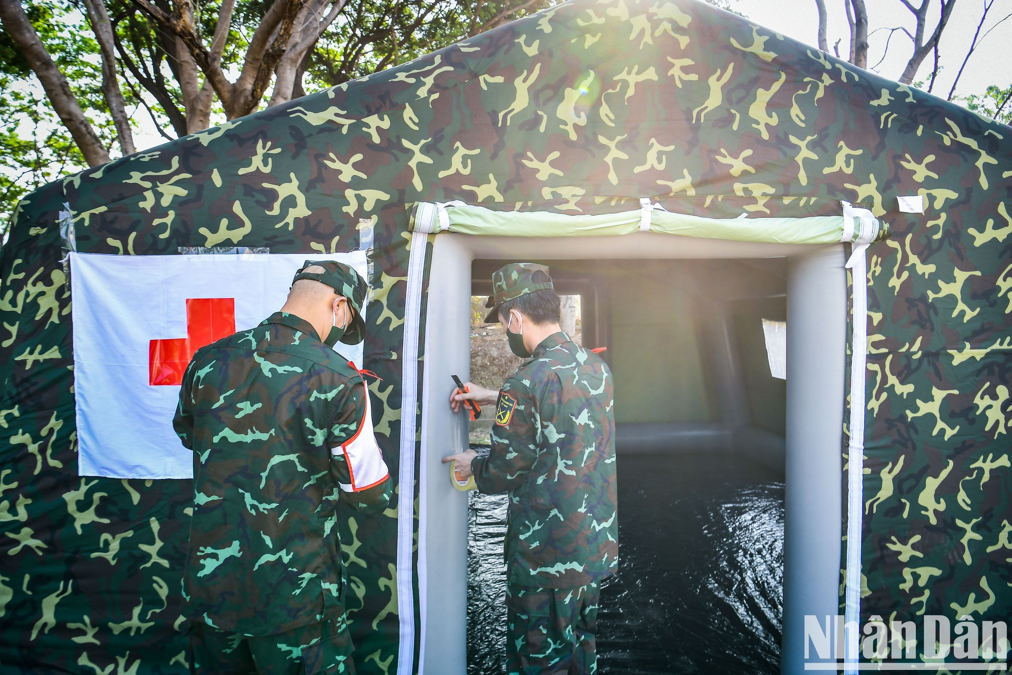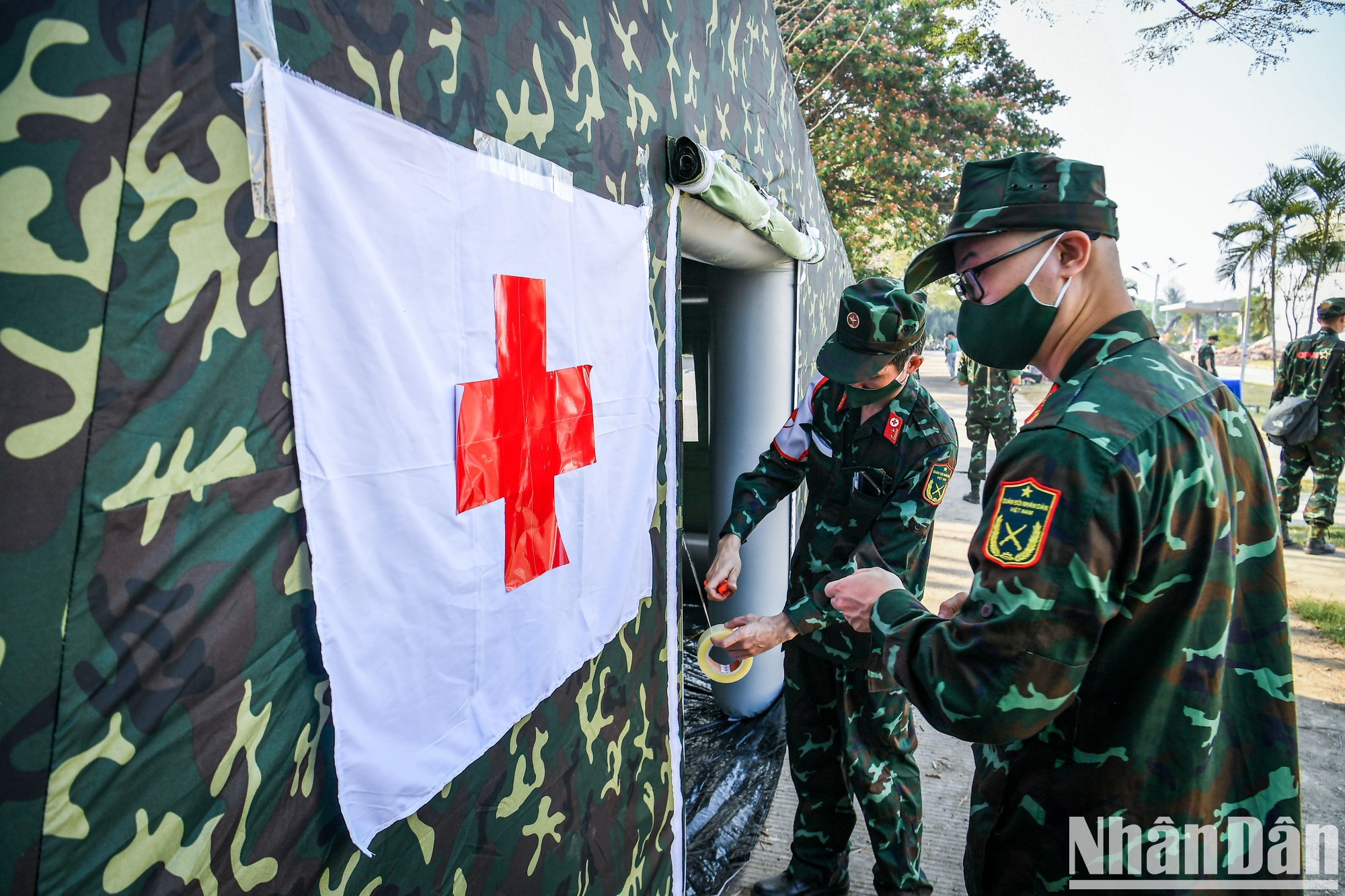 从清晨开始,军医战士就赶赴现场,搭建野战医院帐篷,为缅甸民众服务。