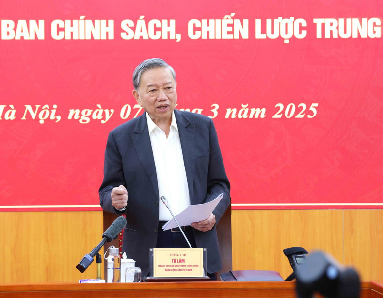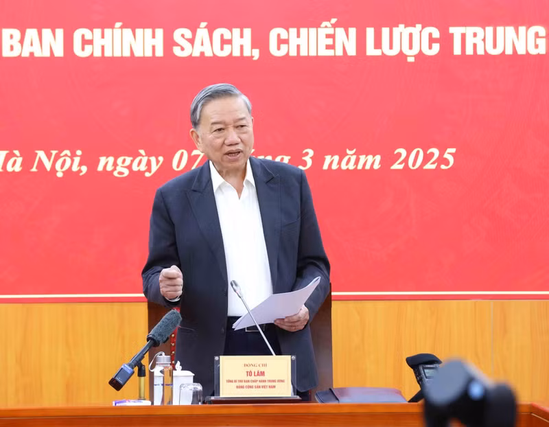 2025年3月7日,越共中央总书记苏林与中央政策与战略委员会进行交谈。