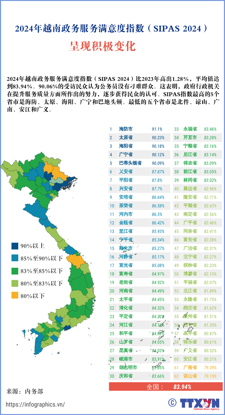 2024年越南政务服务满意度指数呈现积极变化【图表新闻】