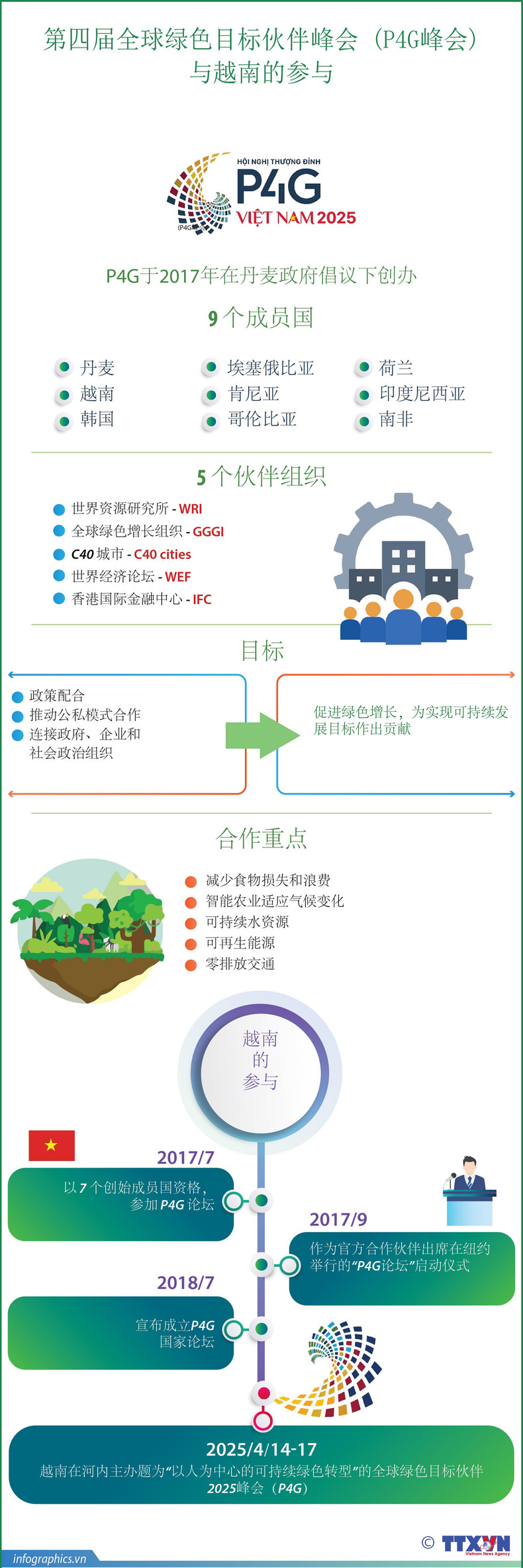 主题为"以人为中心的可持续绿色转型"的P4G峰会于4月14日至17日在河内举行。这是越南首次主办关于绿色增长、绿色转型与可持续发展领域的多边峰会。