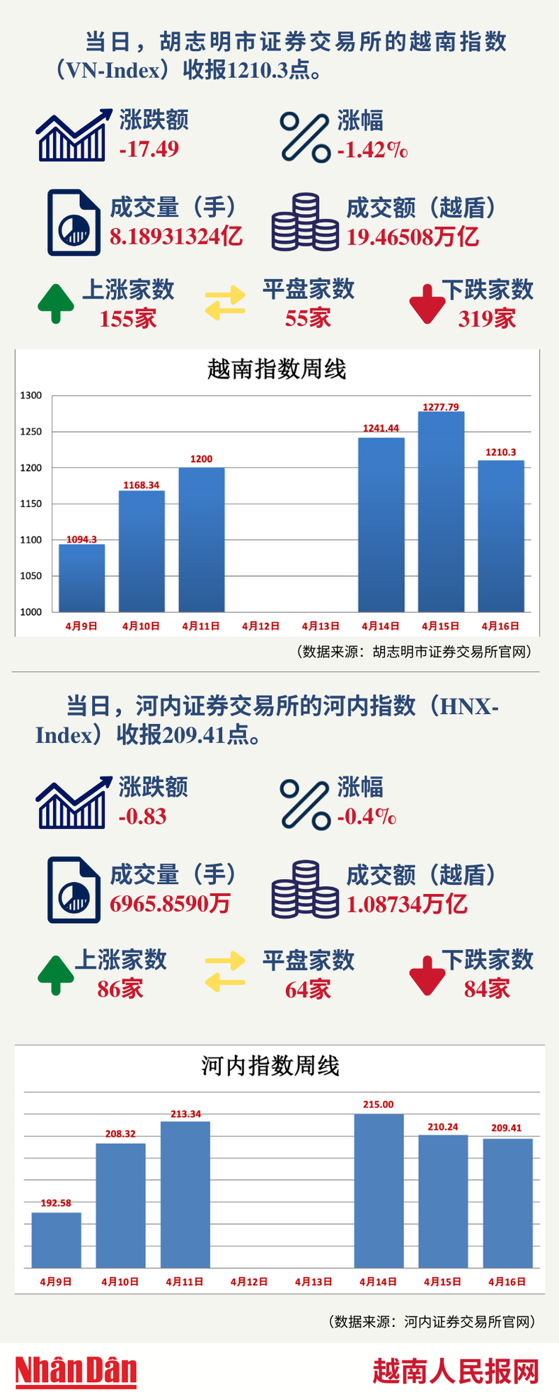 4月16日越南证券市场数据一览 【图表新闻】