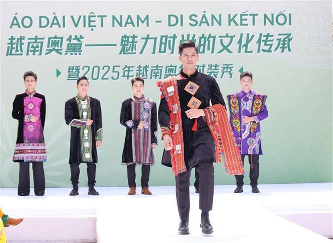 在本次表演中,组委会展示了来自越南顶尖设计师的精美奥黛系列。