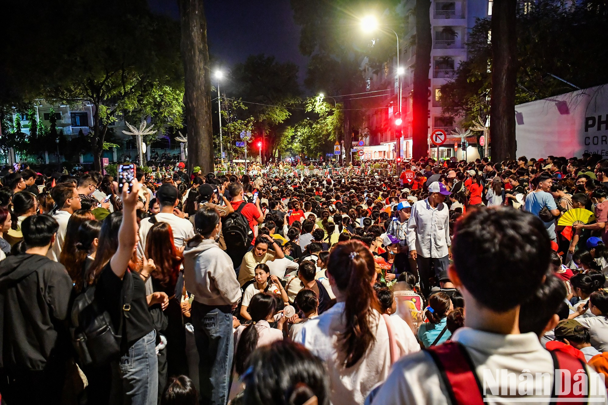 4月27日凌晨0时,黎笋街、丁先皇街、范玉石街、百斯德街等多条道路的人行道上早已人山人海。许多市民从4月26日晚便赶来,占据有利位置,等待翌日观看阅兵、游行总彩排。