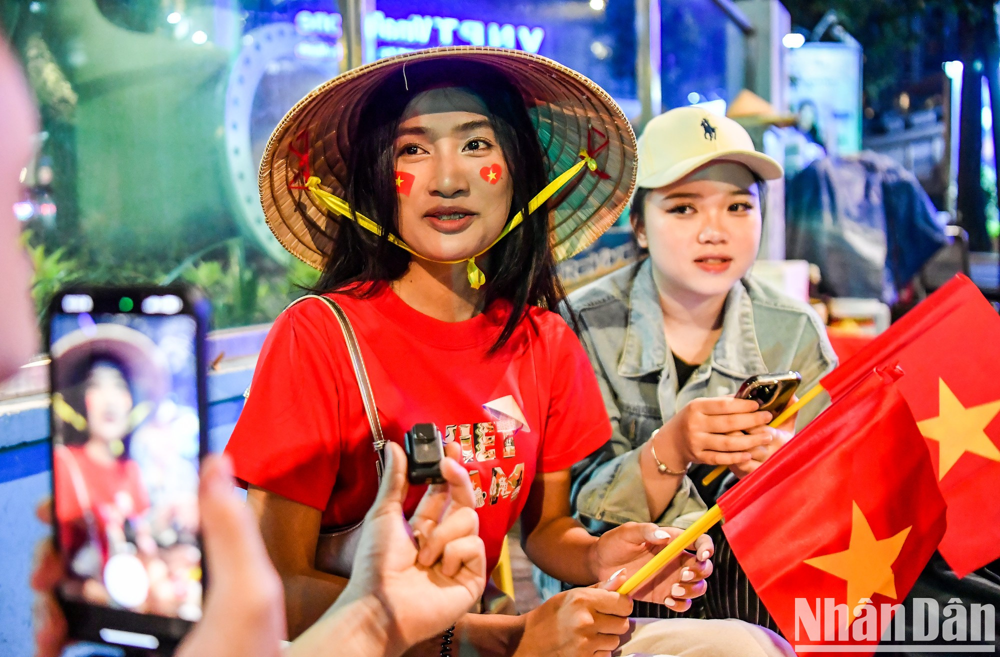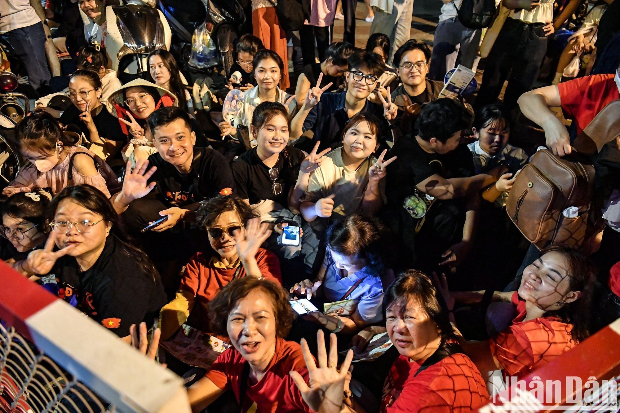 来自永福省、现居胡志明市的女生邓玉兰怀着激动的心情,手持祖国国旗,满怀期待地等待观礼。