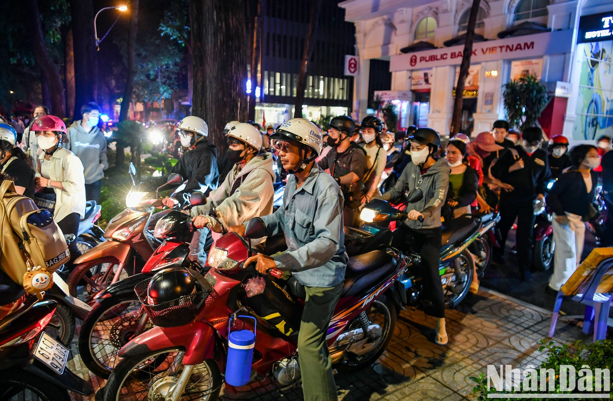 从4月27日凌晨2时起,随着大量人群涌向市中心,交通警察不得不紧急疏导交通。
