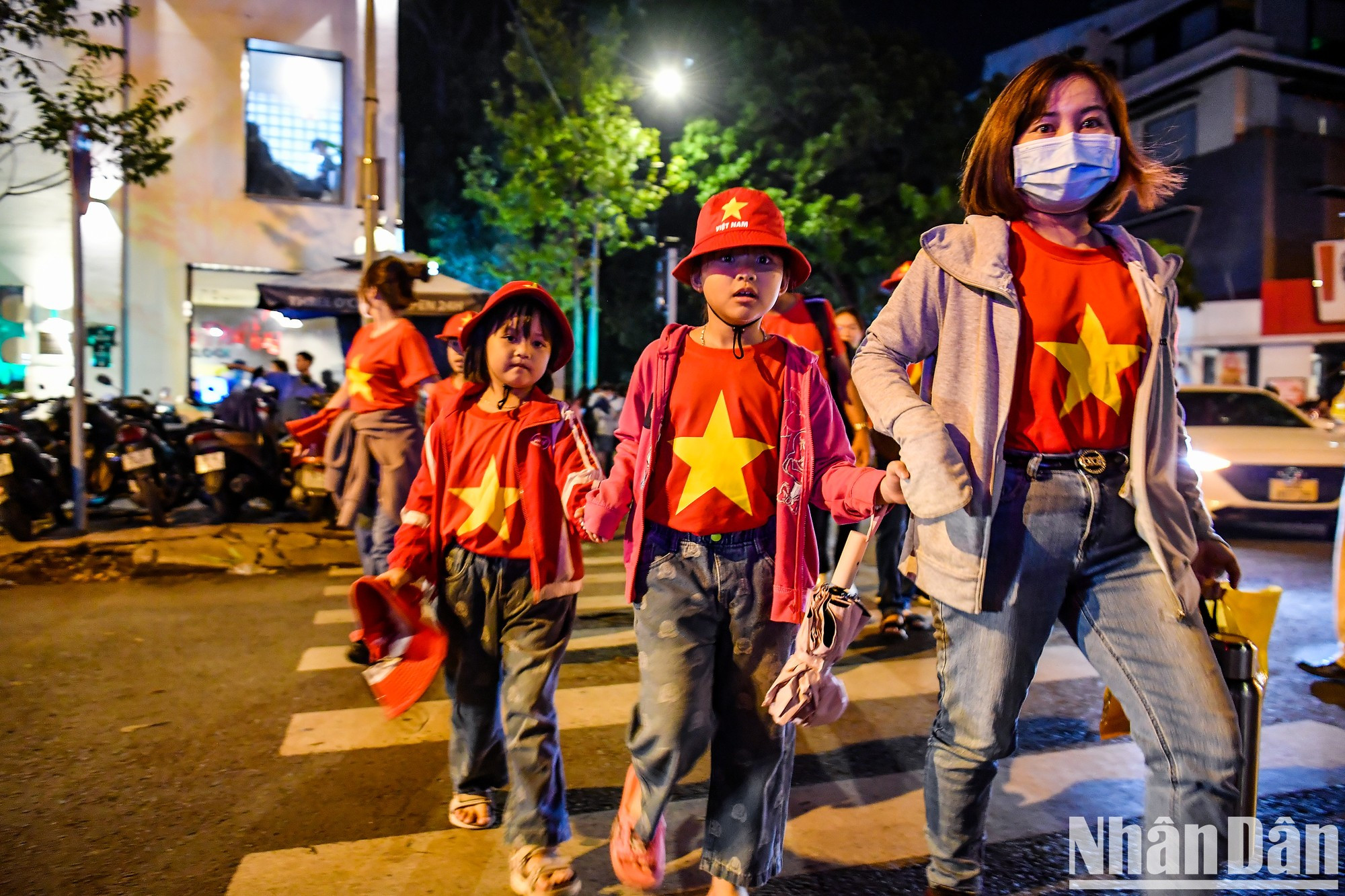一组来自河内的家庭已在丁先皇街选好观礼位置。