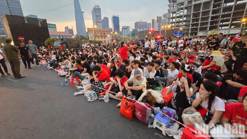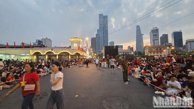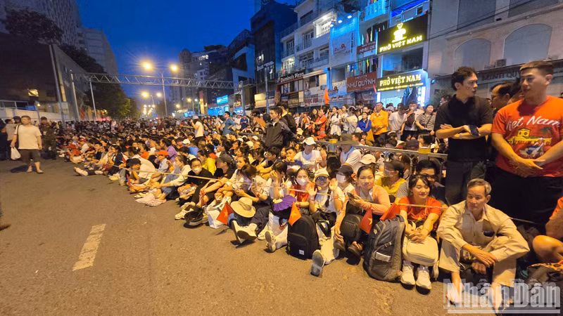 胡志明市市民和四面八方游客一大早就在街道上等待观看阅兵游行仪式。(完)