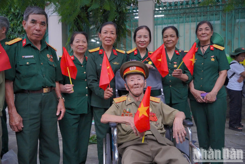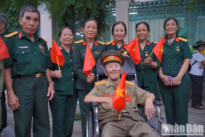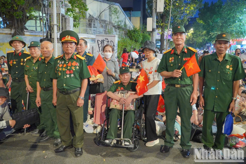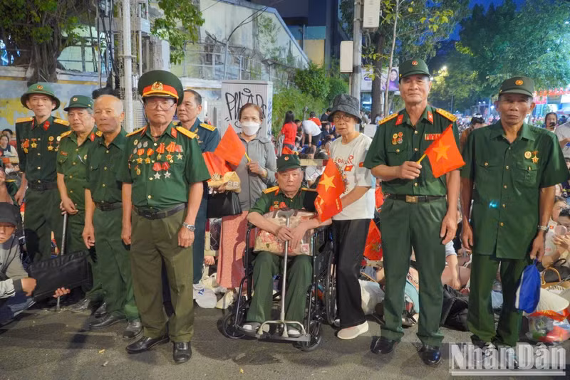 两年前,老先生因摔倒而需坐轮椅出行。但在今年这次重要的纪念活动中,他依然坚持要求子女陪同前往参加这一国家盛事。4月30日凌晨4点,他便由女儿护送,前往南圻起义街与阮氏明开街交汇处,观看阅兵仪式。