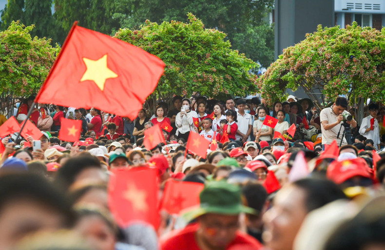 成千上万的观众前来参加,对庆祝南方解放、国家统一50周年纪念活动的精彩文艺表演节目兴奋不已。
