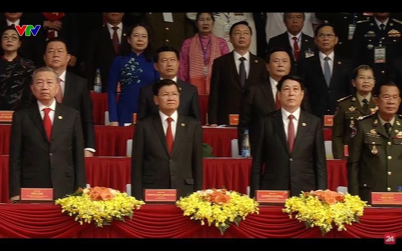 党和国家领导人以及国际嘉宾共同参加升旗仪式。图片来源:越通社