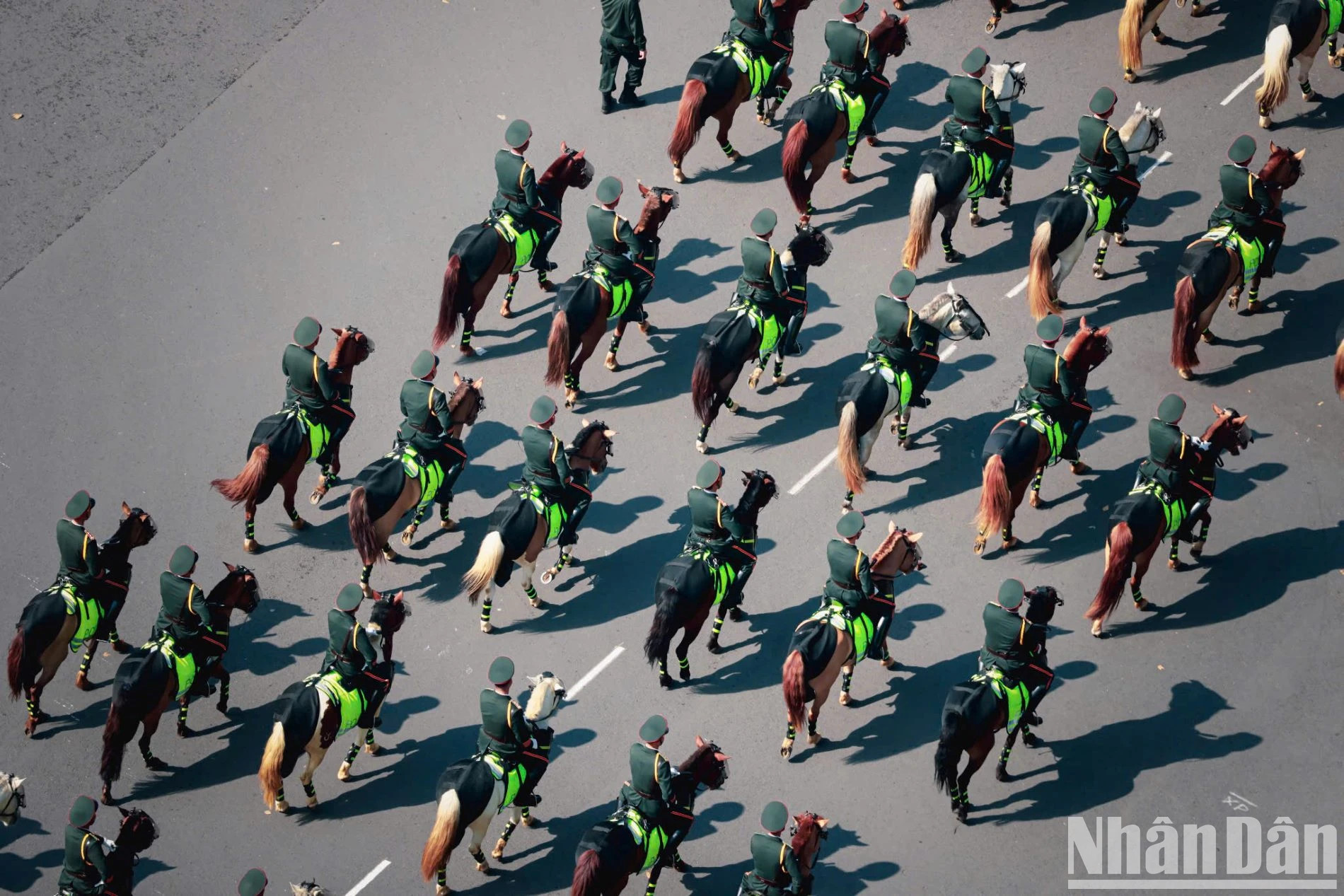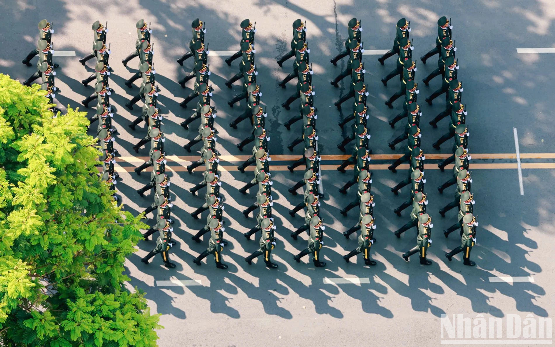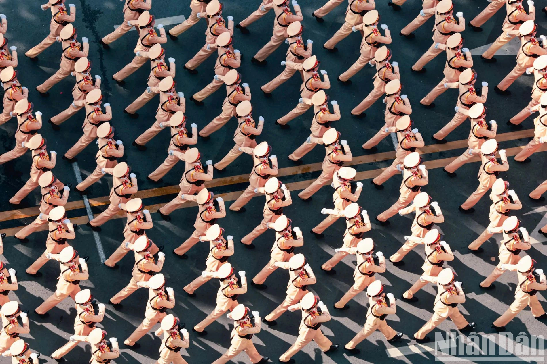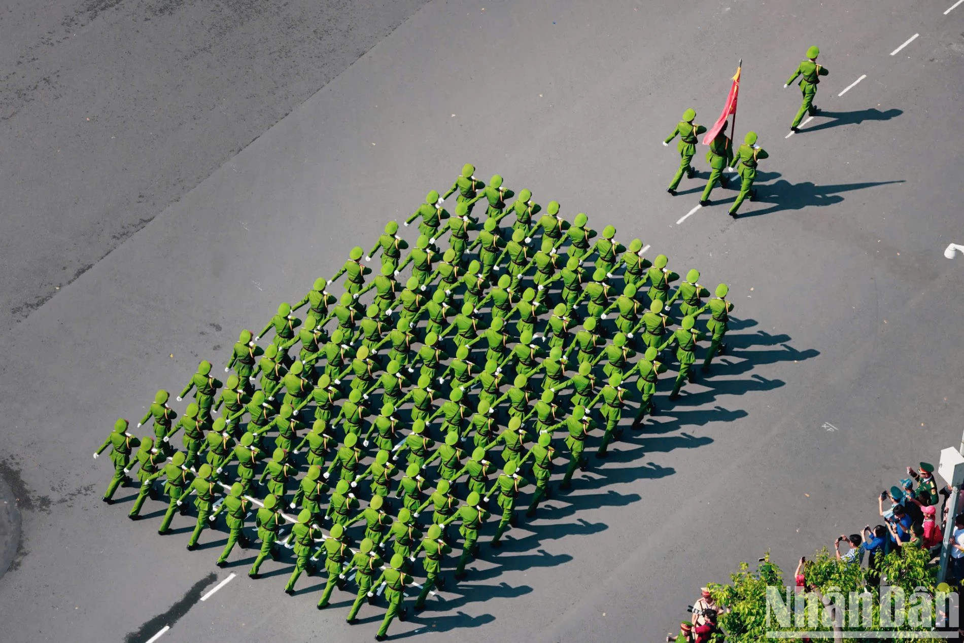 从高空处捕捉2025年4月30日在胡志明市举行的南方解放、国家统一50周年庆典各阅兵、游行方阵的特别时刻。
