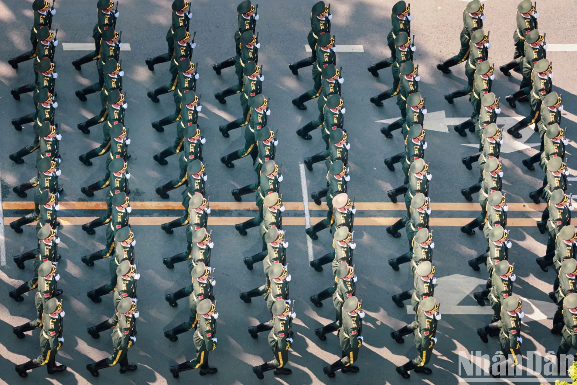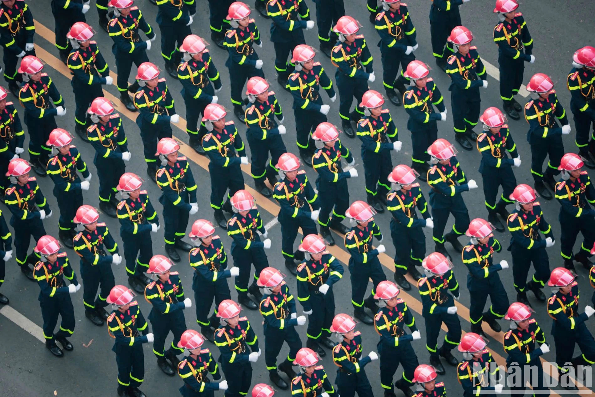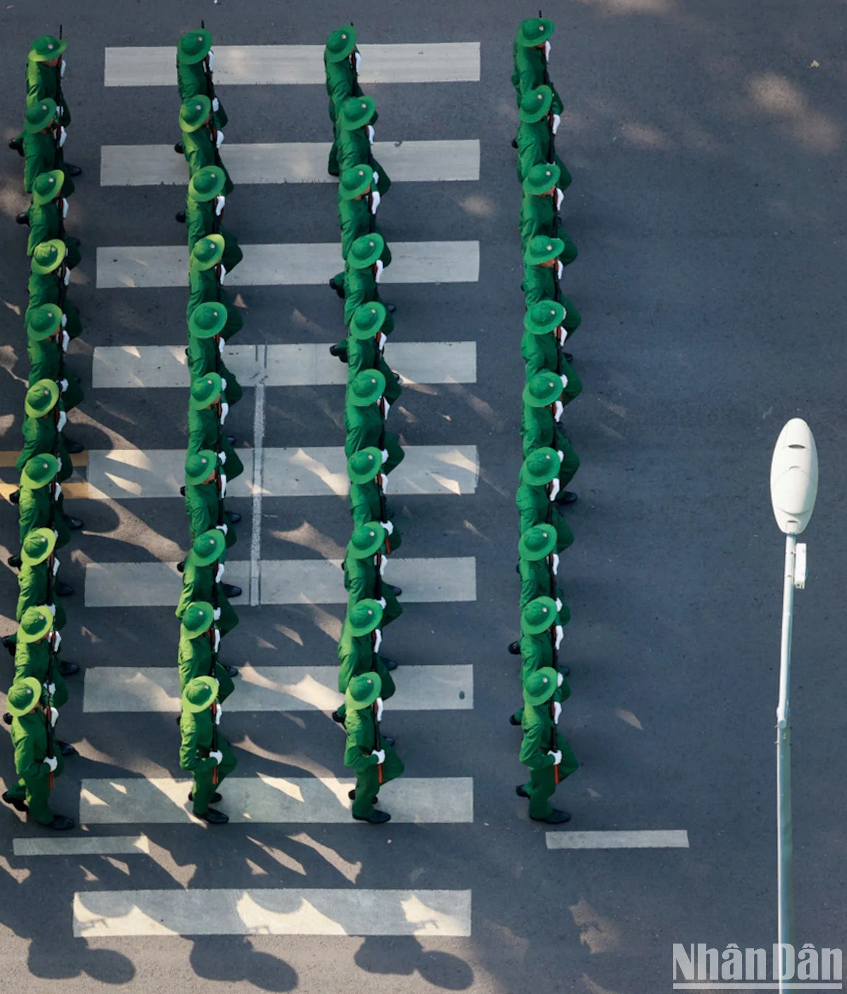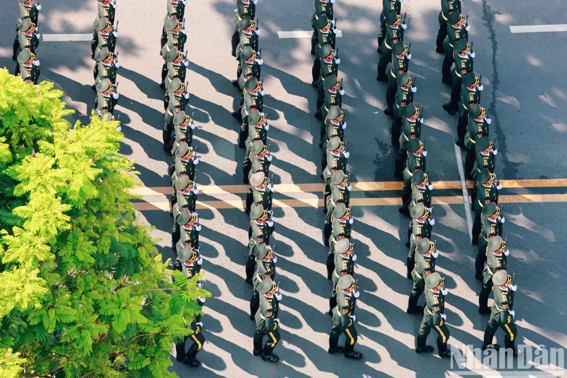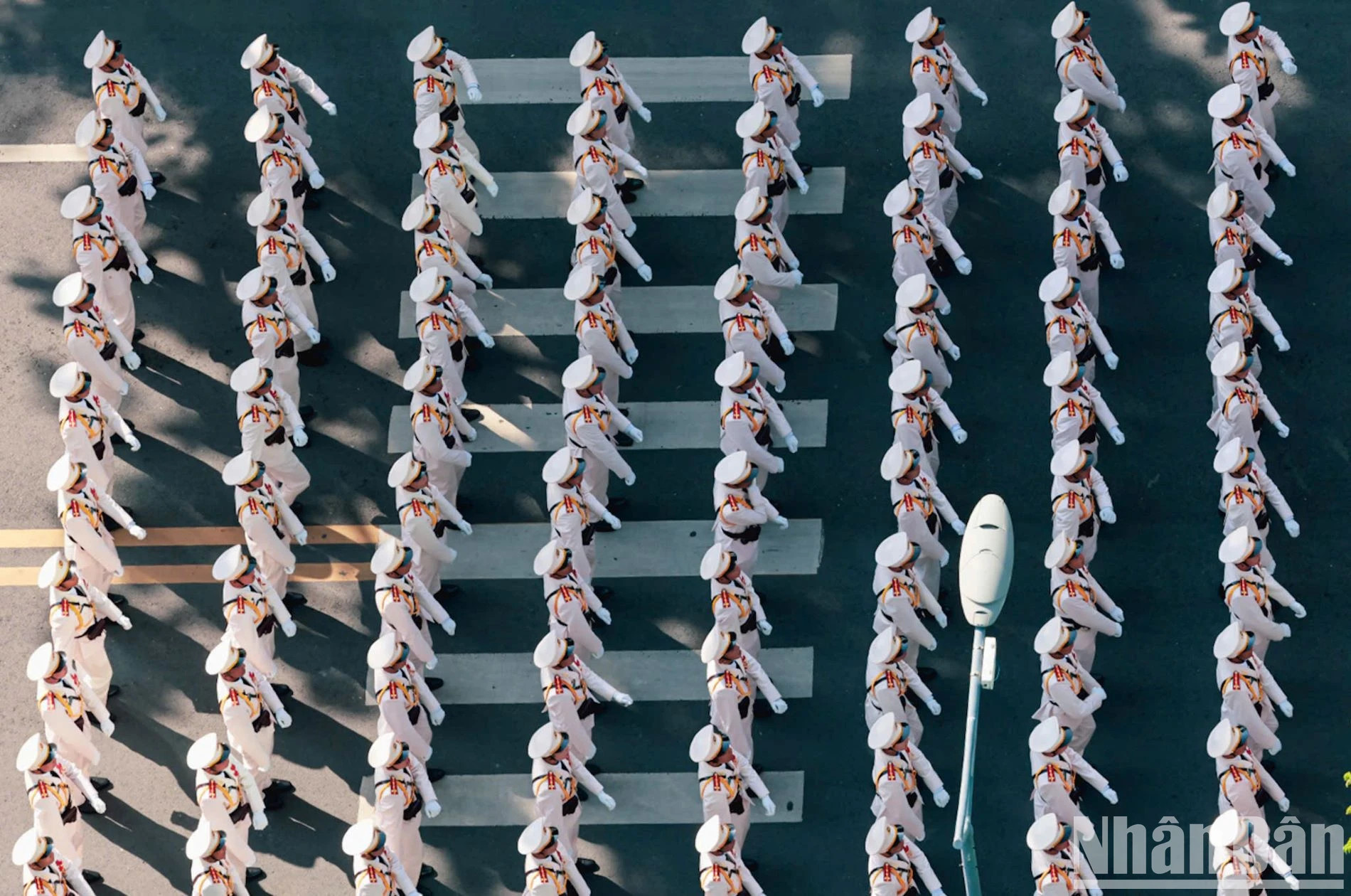 从高空处捕捉2025年4月30日在胡志明市举行的南方解放、国家统一50周年庆典各阅兵、游行方阵的特别时刻。