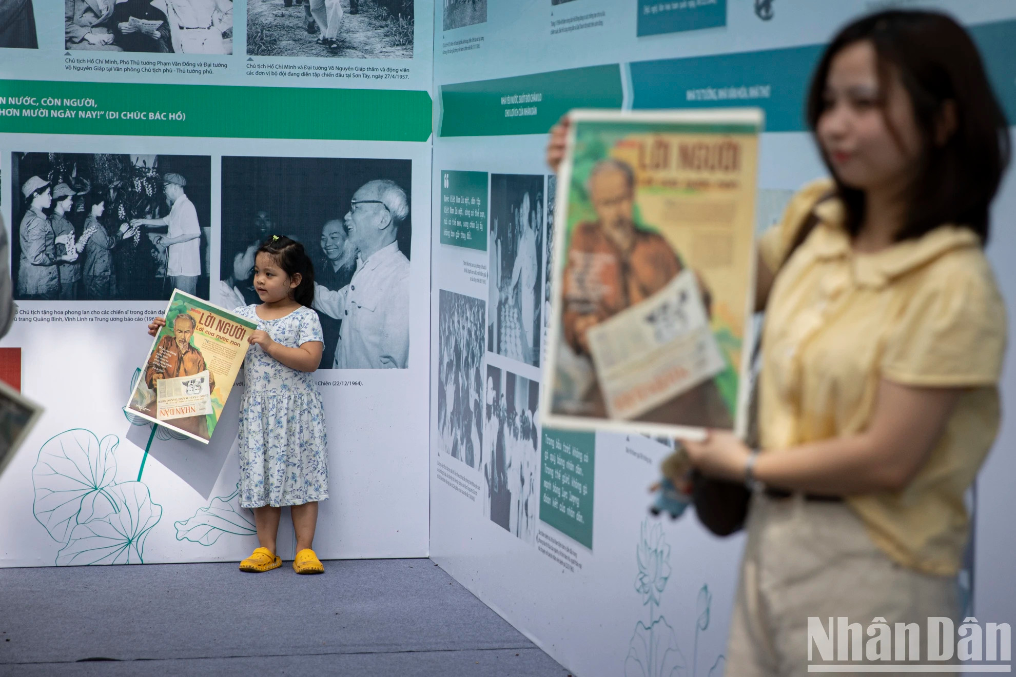 | 该图片展分为三个部分:“胡志明——伟大的人格”、“万众一心敬爱您”和“胡主席与人民报”,生动刻画了胡志明主席作为民族解放英雄、世界文化名人以及人民敬爱的父亲的伟大历程。 |