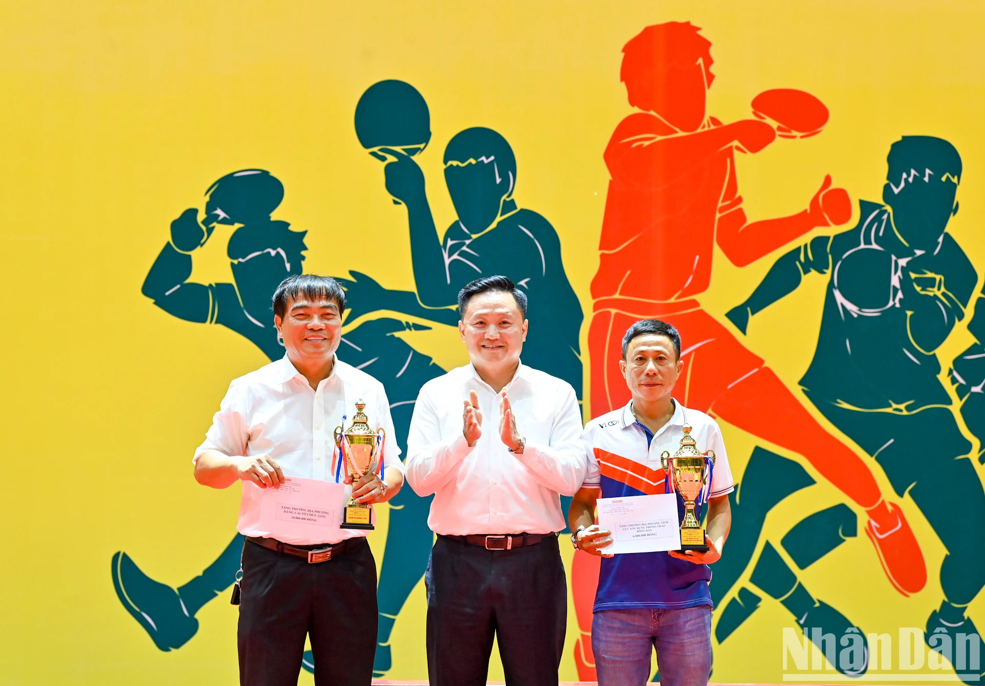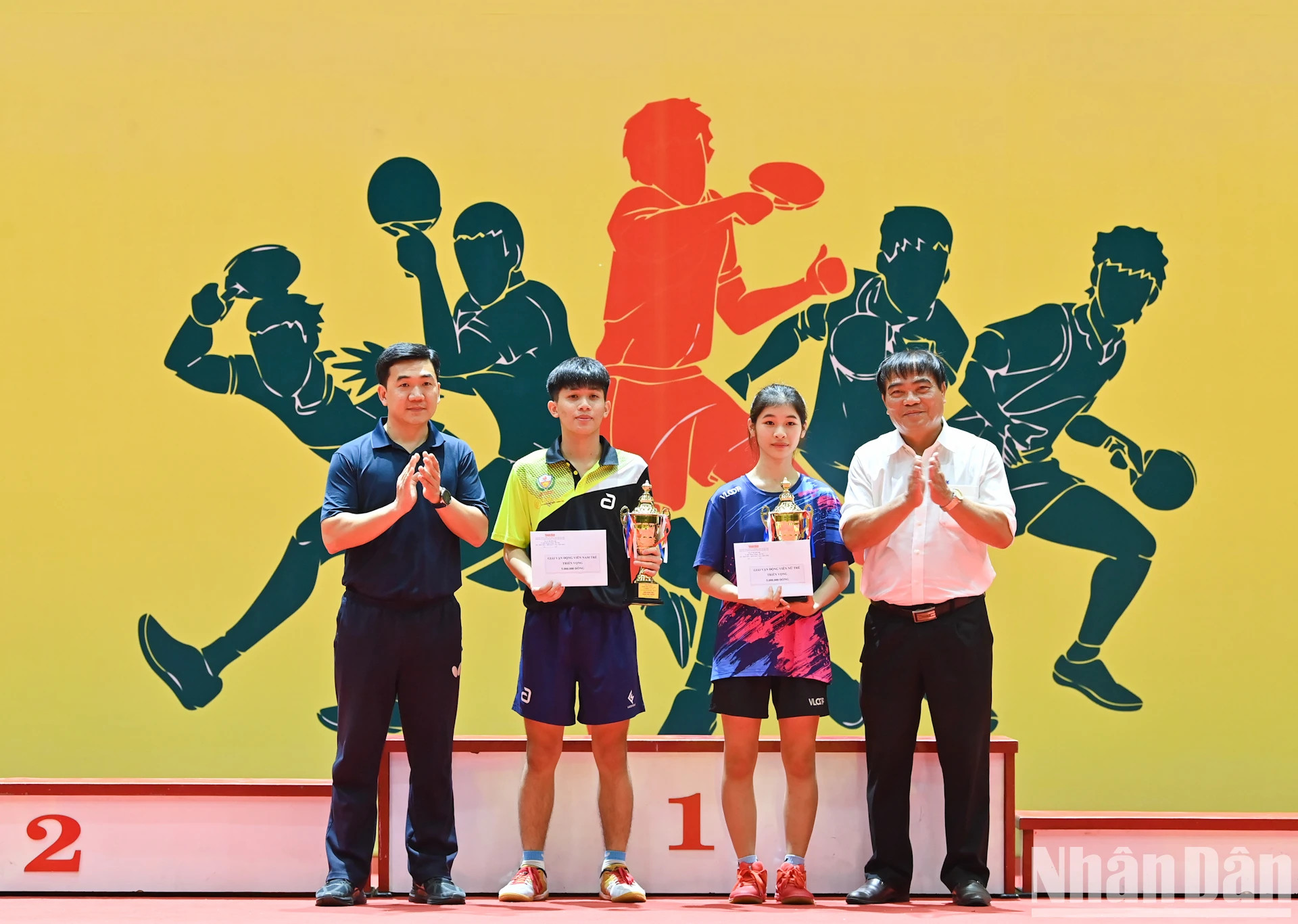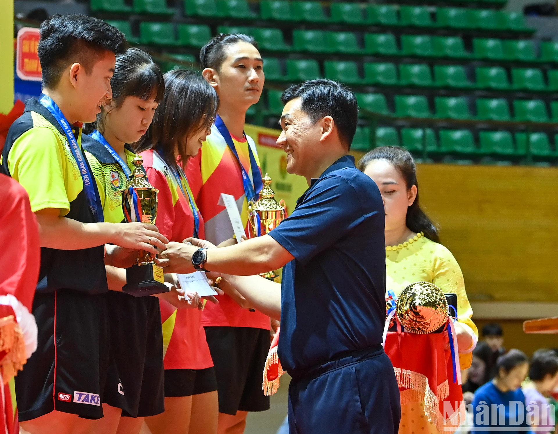 | 组委会代表为混双项目获奖队伍颁发奖牌和奖杯。 |