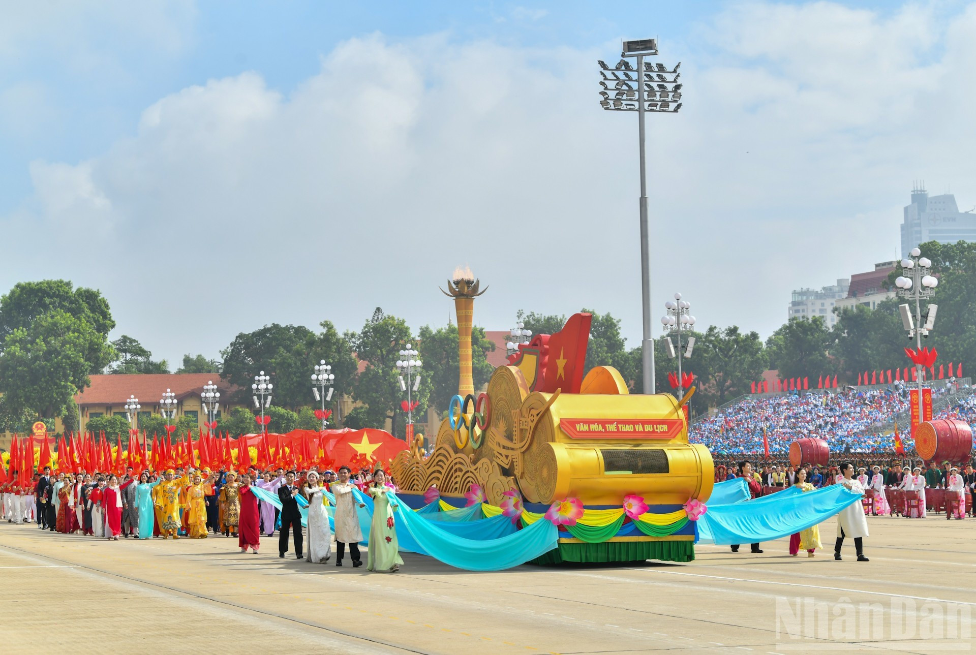 9月2日,庆祝八月革命胜利和越南国庆80周年庆典上,13个群众方阵在巴亭广场游行。
